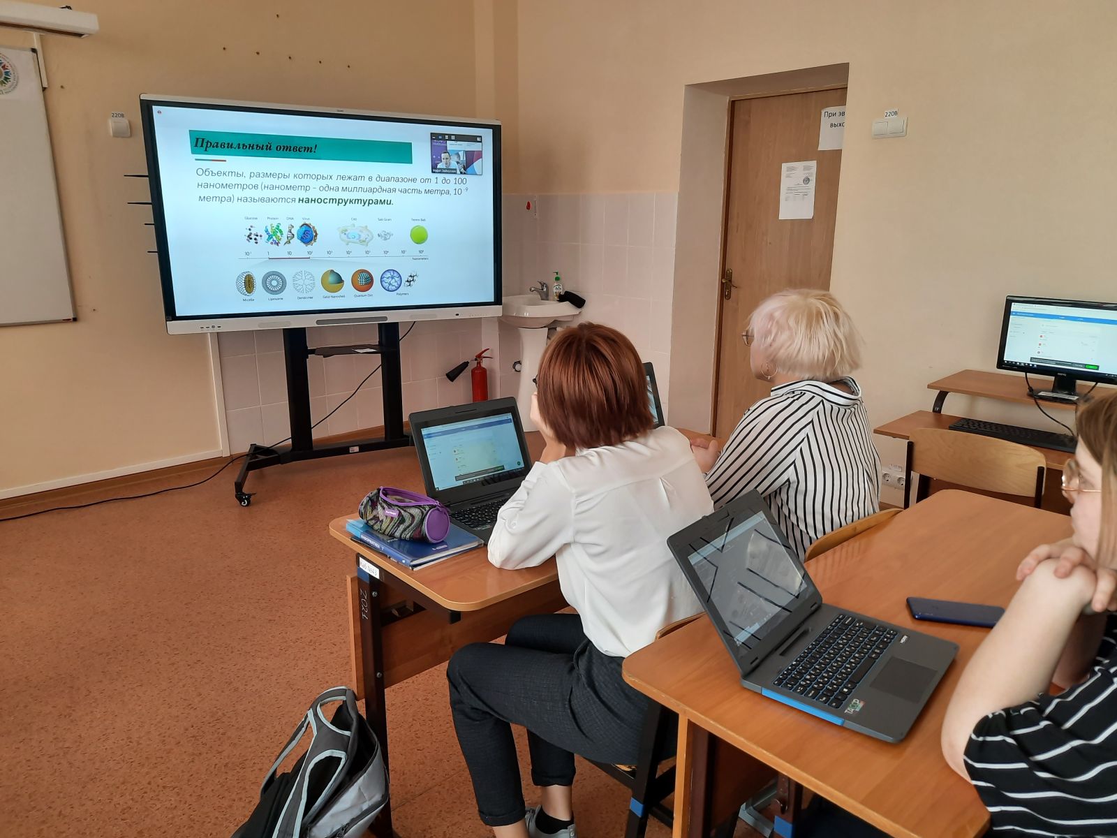 Опубликовано: 17.03.2021Вчера, 16 марта, Школьная лига РОСНАНО в рамках недели высоких технологии и технопредпринимательсва проводил Онлайн игру «По лабиринтам естественных наук в наномир». В ходе онлайн игры учащиеся ознакомились через зумм с опытами , демонстрациями мини лаборатории «Наночемодан 2.0» рассматривали области их практического применения, вопросы задавали по зуму и в течение 2 минут учащиеся отвечали на вопросы уже на другом сайте Slido.com Поздравляем победителя Онлайн игры «По лабиринтам естественных наук в наномир» Ахметшину Диляру (учитель Санатуллина Гульнур Ильясовна), а также призёров Щетинину Анастасию, Федотову Алину ( учитель Хусаенова Гульнур Айратовна).