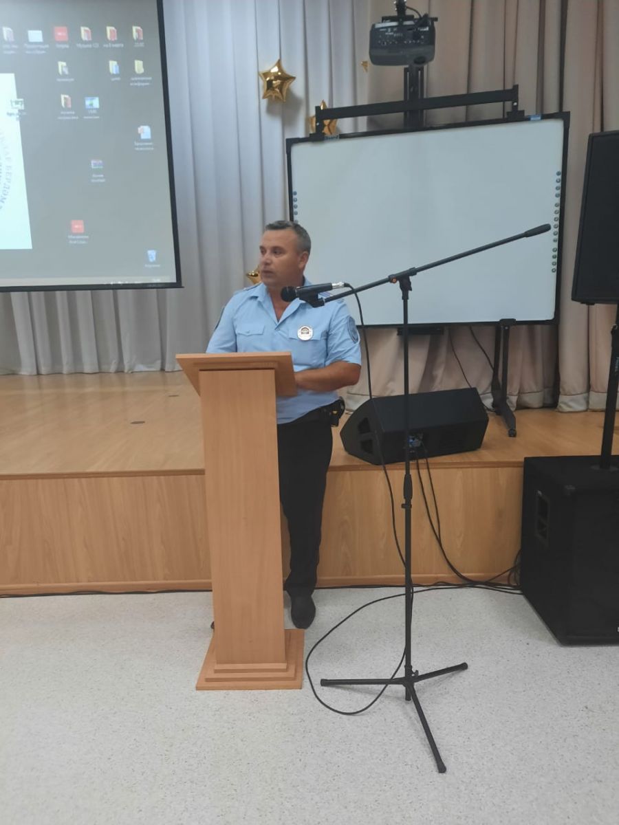 Опубликовано: 24.08.202124 августа в актовом зале школы состоялось родительское собрание с участием начальника ОГИБДД ОМВД России по Лениногорскому району майора полиции Слабодина В.Г. по дорожно-транспортному травматизму. Собрание началось с выступления агитбригады отряда ЮИД . Слабодин В.Г. ознакомил родителей с теоретическими основами безопасности дорожного движения и статистикой ДТП по РТ и Лениногорскому району.