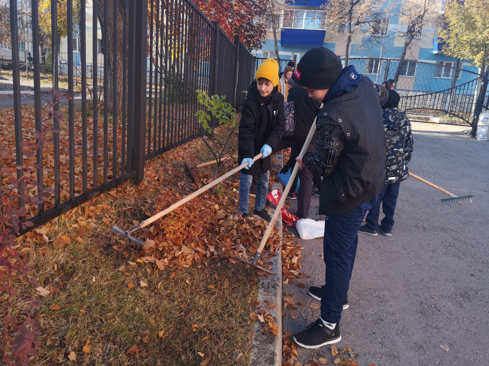 Ребята с удовольствием приводили в порядок школьную территорию: собирали мусор, сгребали листву и траву. Особое внимание уделили состоянию зеленых зон.