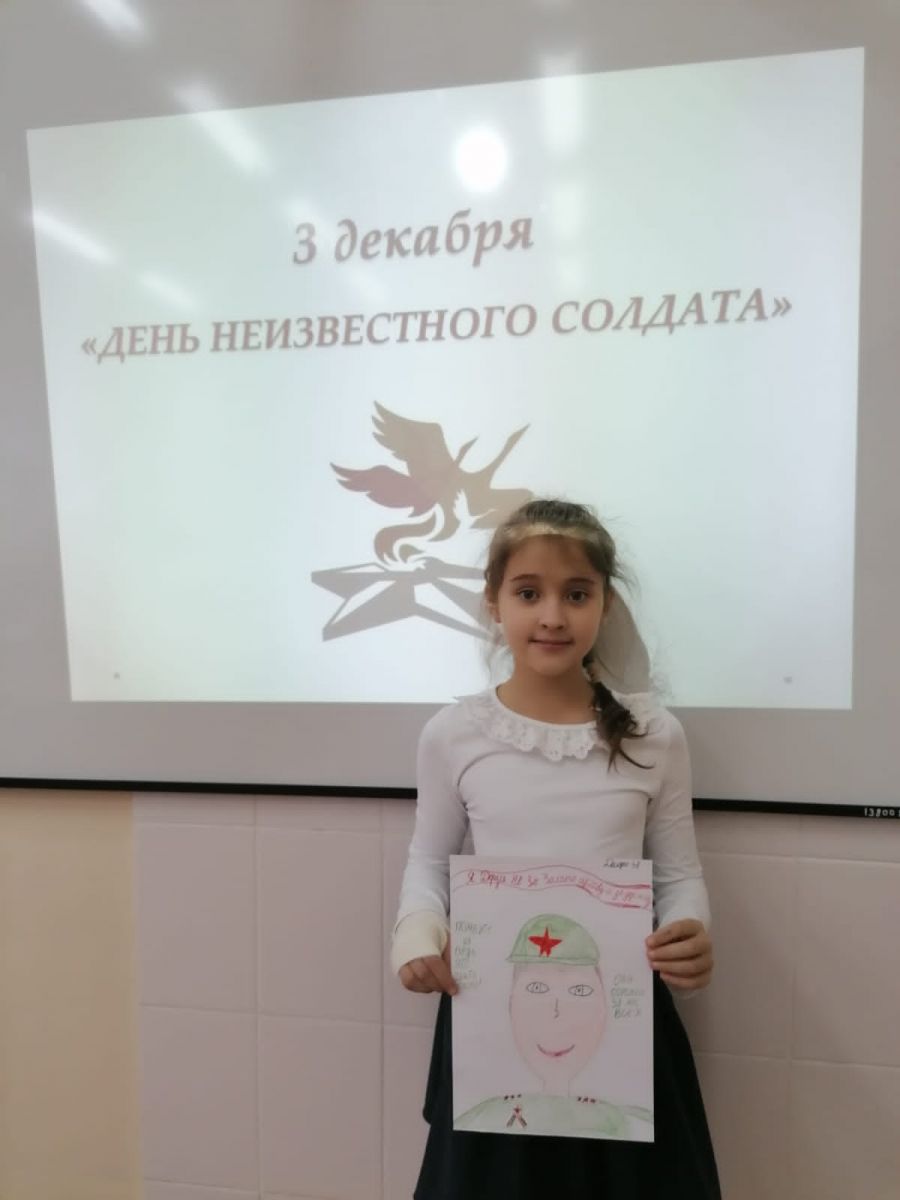 Опубликовано: 03.12.20213 декабря в школе прошли мероприятия посвященные памятной дате- Дню неизвестного солдата.В этот день состоялись тематические классные час на тему «Урок мужества», выставка рисунков «Живет среди нас герой», отряд ЮНАРМЕЙЦЕВ возложили венок к вечному огню, в память погибшим в Великой Отечественной войне, учащиеся 9-11 классов участвовали в международной акции Тест по истории ВОВ. День неизвестного солдата – это не только день памяти погибших в годы Великой Отечественной войны, но и дата, которая объединяет всех погибших и пропавших без вести во время войн и военных конфликтов.Пусть же память о Неизвестном солдате живет и передается из поколения в поколение.