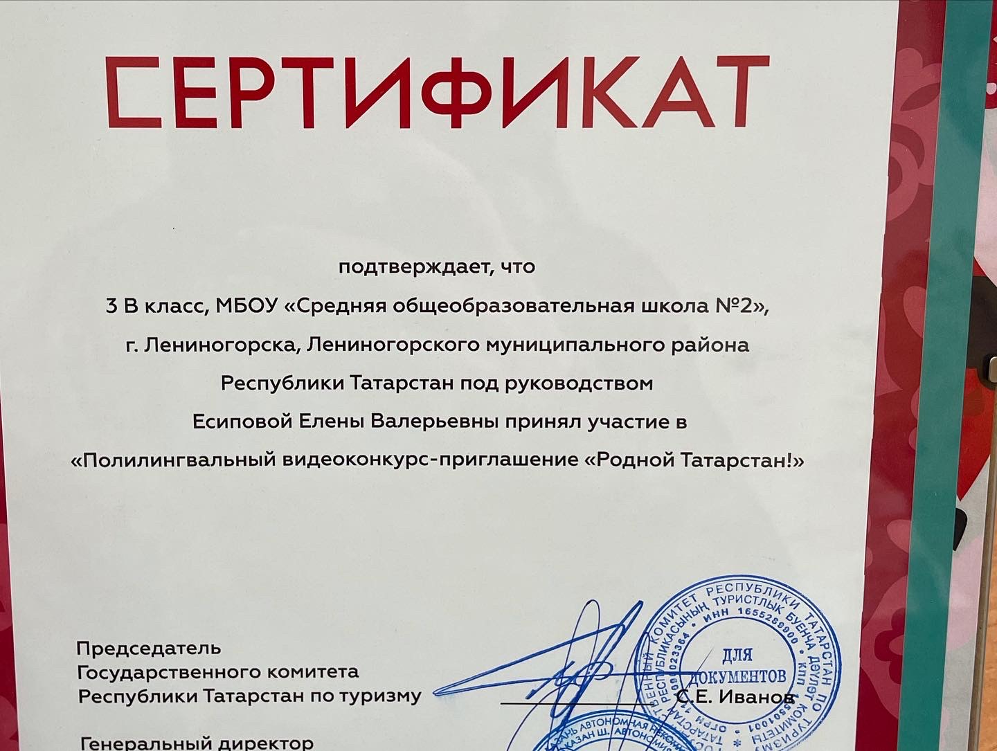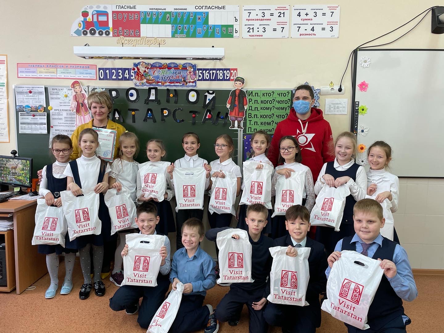 Опубликовано: 25.12.2021Ребята 3 в класса (рук. Есипова Е. В.) приняли участие в полилингвальном видеоконкурсе – приглашении «Родной край». Конкурс организован Республиканским Фондом возрождения памятников истории и культуры РТ, Минкультуры и Минобразования РТ, Ассамблеей туристских волонтеров и Республиканским агентством «Татмедиа». 25 декабря представители организаторов конкурса посетили нашу школу, поздравили ребят 3 в класса с успешным участием в конкурсе и вручили им подарки.