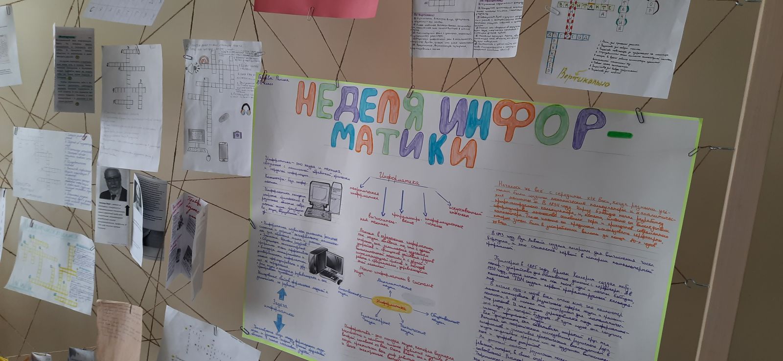 Опубликовано: 24.02.2022В рамках недели математики, физики и информатики в школе организована выставка, где представлены творческие работы учащихся. Буклеты, стенгазеты, плакаты, рефераты и исследовательские работы. Ребята не перестают удивлять свовим творчеством и фантазией. Молодцы!