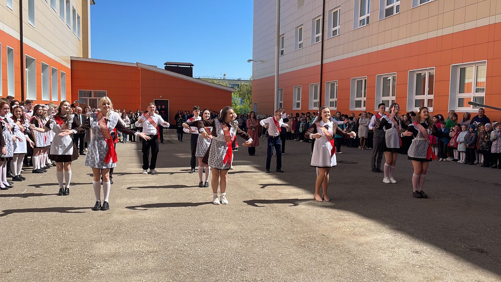 Опубликовано: 24.05.2022Самый трогательный и незабываемый праздник-Последний звонок, прозвенел для выпускников 24 мая. Три с половиной тысячи звонков вместили в себя их школьные годы. Однако ни один из ни не был похож на другой. Какой -то торопил на первый урок, какой-то звал к любимому учителю. Но вот подошло время последнего звонка. Напутственные речи от главы Лениногорского муниципального района, мэра города Лениногорск Хусаинова Р.Г., директора школы Платоновой О.К., учителей, для которых дети стали частью жизни, волнение родителей, которым трудно поверить, что их ребенок уже взрослый. И хотя впереди еще экзамены и выпускной, ребята как и 11 лет назад вышли с цветами, чтобы поблагодарить своих педагогов и сказать школьному детству «Прощай»