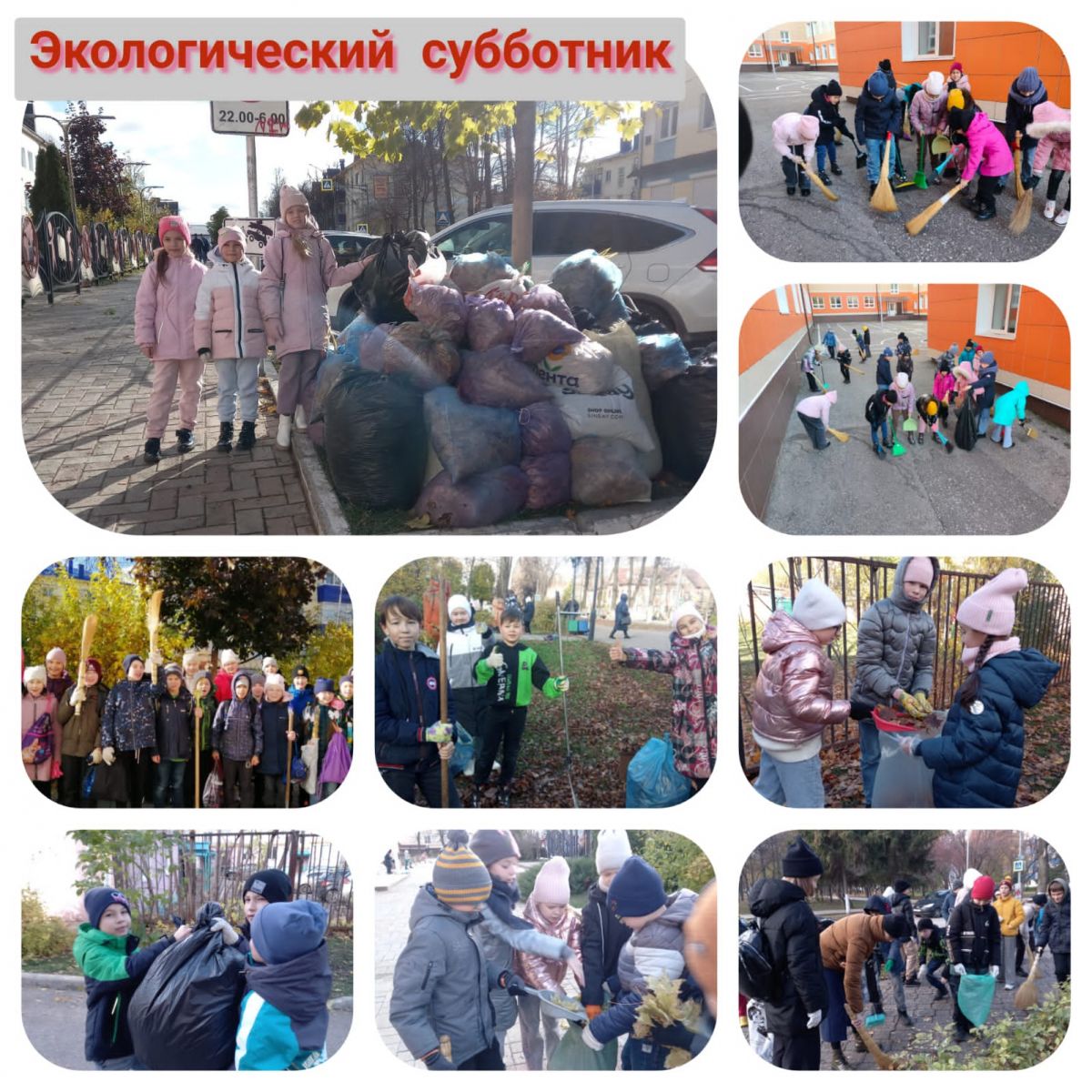 Опубликовано: 24.10.2022Субботники – добрая традиция, объединяющая поколения. В данной акции принимают участие все сотрудники школы и ученики с 2 по 11 класс. Для проведения субботника по очистки территории был составлен план мероприятий. Вооружившись необходимым инвентарем, ребята и педагоги с удовольствием приводят в порядок школьную территорию и сквер :собирают мусор, сгребают листву и траву, убирают старые сучки деревьев и кустарников.