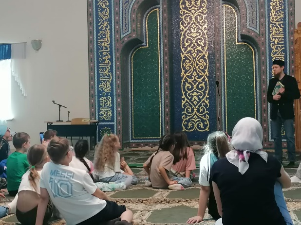 Опубликовано: 10.06.2023Сегодня,10 июня, ребята пришкольного лагеря "Ромашка" посетили мечеть "Ихлас". Там им провели экскурсию по многочисленным залам, находящимся внутри. Ребята увидели залы,где проводится помолвка. Также показали два молельных зала и побывали в музее мусульманской культуры. Посещение мечети оставили у ребят неизгладимые впечатления!