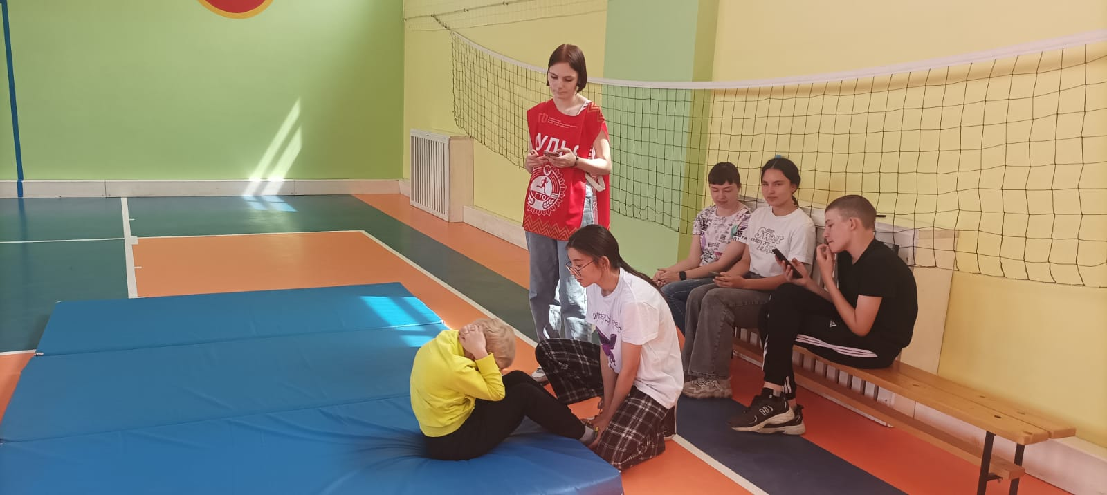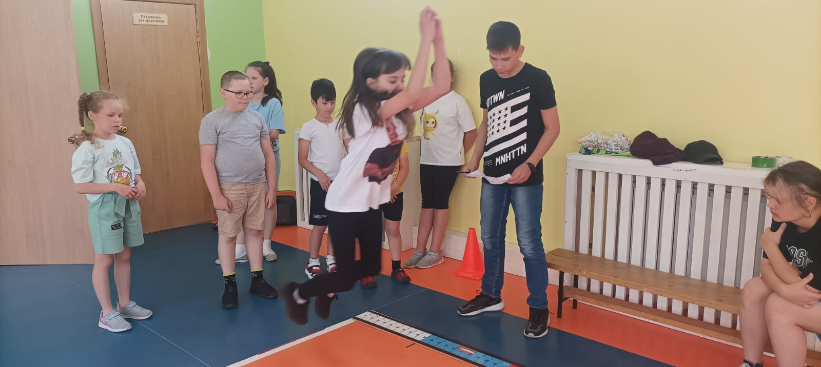 Воспитанники лагеря проходили такие испытание как: сгибание/разгибание рук в упоре лежа, прыжок в длину с места толчком двумя ногами, поднимание туловища из положения лежа, метание мяча , наклон вперёд (на гибкость). Судьи оценивали уровень подготовленности детей и следили за правильностью выполнения испытаний. Ребята активно принимали участие, проходили испытания с большим энтузиазмом и показали хорошие результаты.