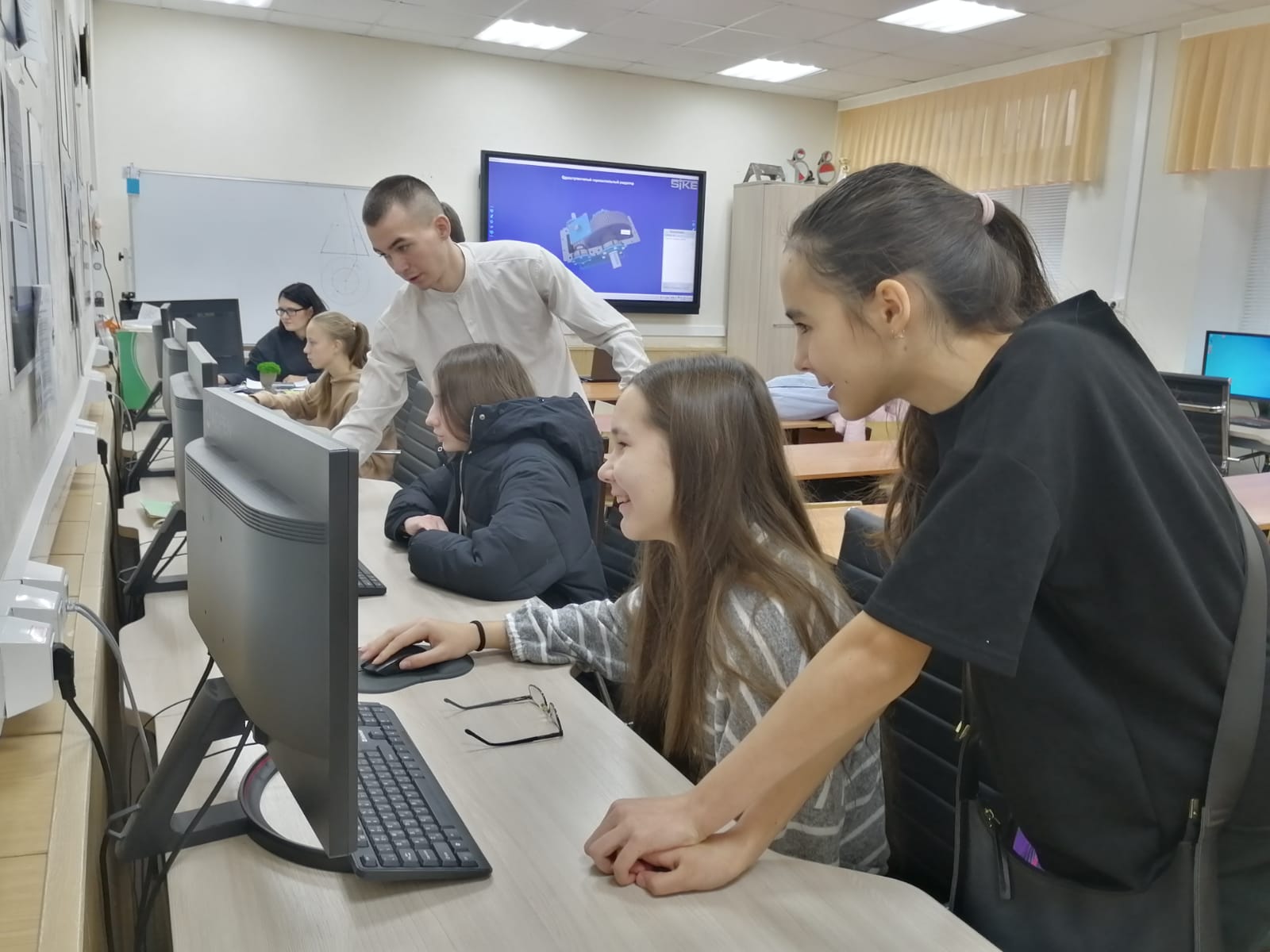 Ребята познакомились со специальностями «Геофизические методы поисков и разведки месторождений полезных ископаемых», «Информационные системы программирования, «Машинист буровой установки», «Разработчик мобильных приложений», «Машинист насосов и трубопроводов». Ученикам было предложено поработать с оборудованием, составить программы на компьютере.