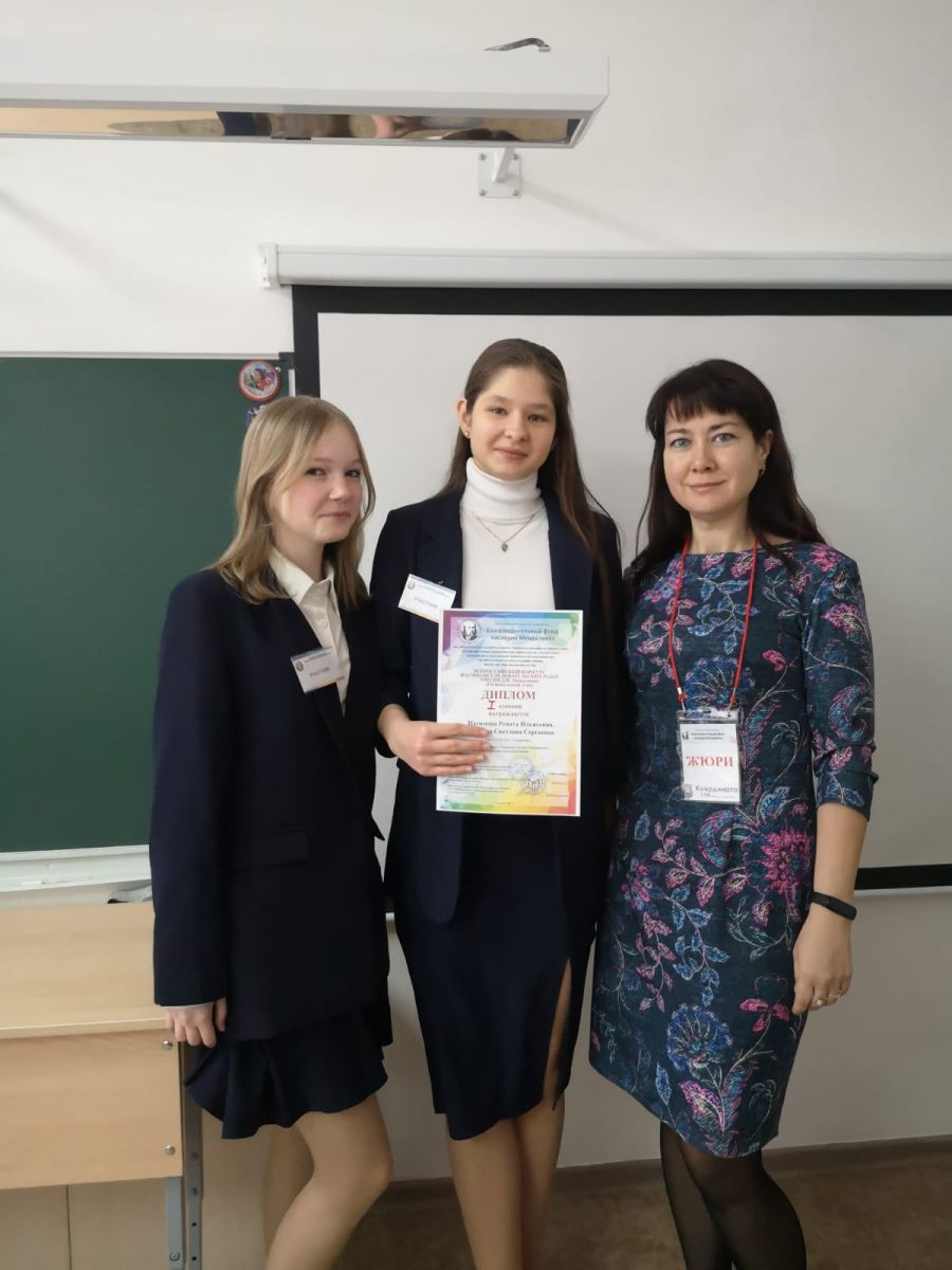 Опубликовано: 19.12.2023Поздравляем победителей регионального этапа всероссийского конкурса научно-исследовательских работ Д.И. Менделеева Степанову Светлану, ученицу 9а класса и Нагимову Ренату, ученицу 9б класса (руководители Нагимова С.В., Зазулина И.В.)