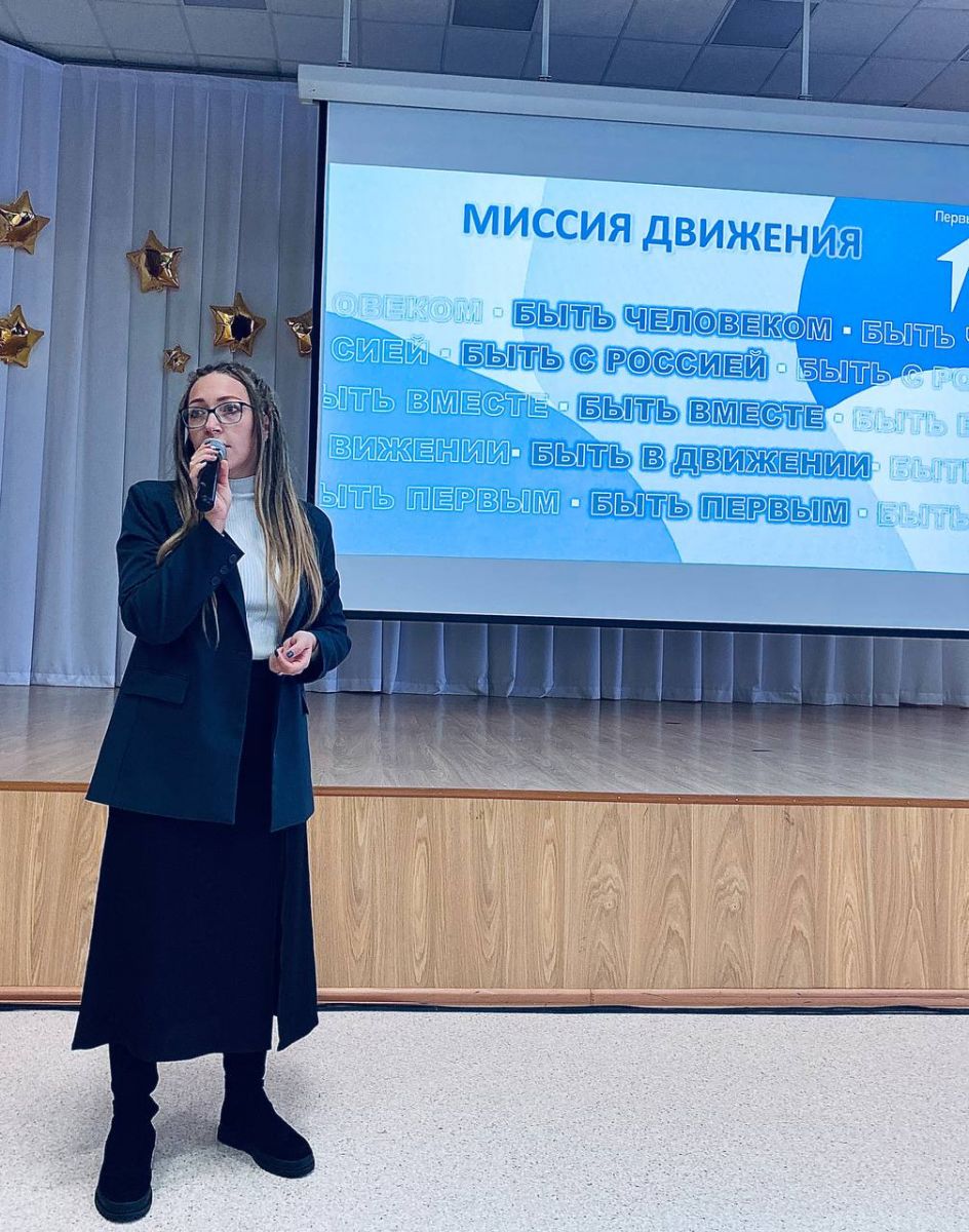 Опубликовано: 23.01.202422 января нашу школу посетила Марчина Марина Владимировна, председатель Общероссийского общественно-государственного движения детей и молодёжи «Движение Первых» города Лениногорск. Она рассказала ученикам о Движении, поделилась своим опытом и зарядила всех своей энергией, рассказала о том, как важно быть активным, стремиться к новым знаниям и не бояться проявлять себя.