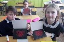 День Святого Валентина празднуется 14 февраля во многих странах мира. В этот день любимым и дорогим людям принято дарить цветы, конфеты, игрушки, воздушные шарики и особые открытки с сердечками, в которых написаны стихи, признания в любви или просто приятные пожелания.Вот и учащиеся нашей школы приняли участие в мастер – классе Зариповой А. Г. по изготовлению открытки - Валентинки своими руками для любимых и родных людей. Все четко выполняли задания. Поэтому у всех получилась чудесная открытка с секретом, где ребята, для своих мам или других близких напишут самые теплые пожелания. -
