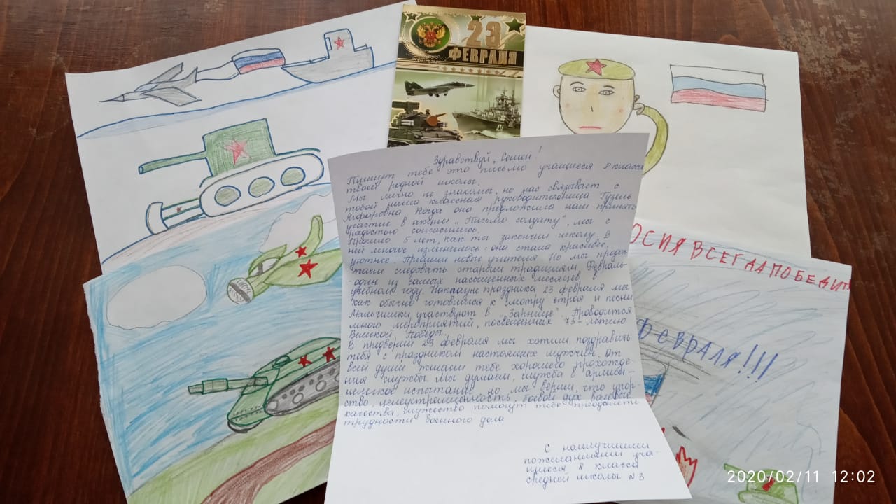 В рамках проведения месячника по гражданско-патриотическому воспитанию в городе проходит акция «Письмо солдату», в которой приняли участие учащиеся нашей школы. Наше доброе дело нашло отклик в душе солдата, выпускника МБОУ СОШ №3, Семена Ефремова, который в данный момент проходит срочную службу в рядах Российской армии. Ребята с большой радостью и трепетом написали поздравительные письма, в которых отметили, что надеются на мужество и отвагу Семена, который стоит на защите Родины, и верят, что по возвращению, обязательно придёт в родную школу и расскажет о своей службе. Учащиеся рассказывали о себе, о своих планах и мечтах, написали о школьной жизни и пожелали Семену отличной службы, здоровья и скорейшего возвращения домой.Благодарим всех, кто откликнулся на призыв акции и сделал доброе и значимое дело!!! -