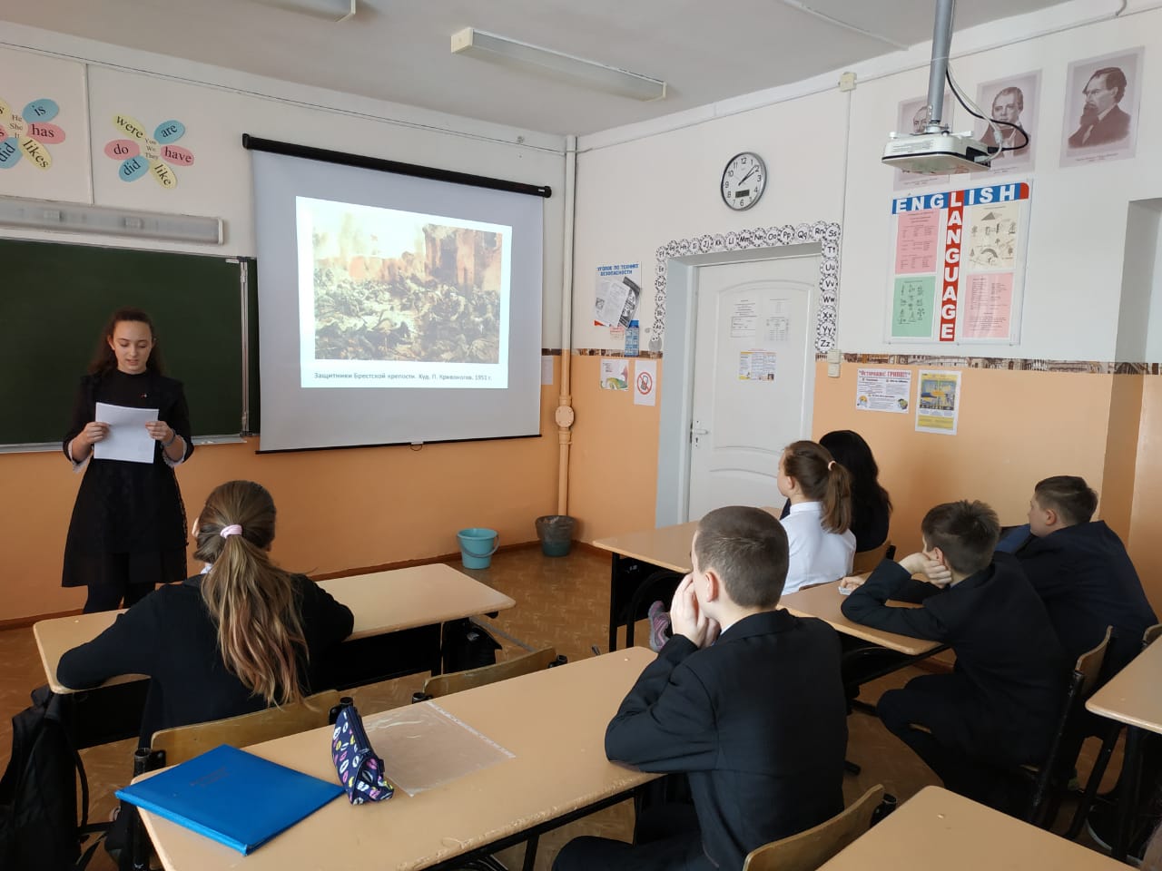 В школе начал работу кинолекторий «Фильмы о Великой Отечественной войне» (руководитель Журавлева М.П.). Развивая патриотические чувства у школьников путем приобщения их к прекрасному, истинному искусству, кинолекторий становится занятием искусства, нравственно-эстетическим стержнем которого является художественно-педагогическая идея, что дает учителю и учащимся осмысливать фильм через общечеловеческие ценности.Ребята 5-9 классов посмотрели фильм «Т-34», «28 панфиловцев», "Блокада Ленинграда", «Судьба человека». Кинолекторий «Фильмы о Великой Отечественной войне» – это, в первую очередь, кино о сильных духом и смелых людях, которые решают боевые задачи, о детях, которые переносят все тяготы войны с взрослым мужеством и стойкостью. -