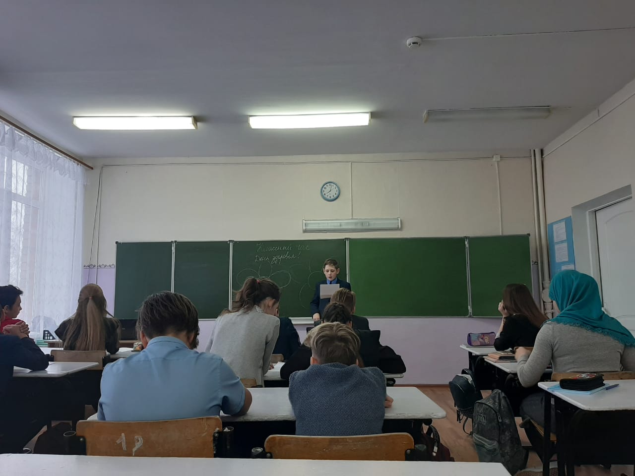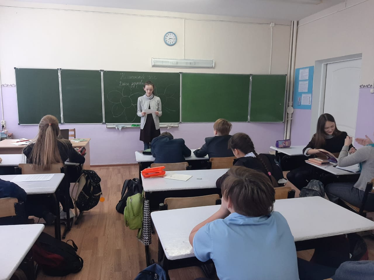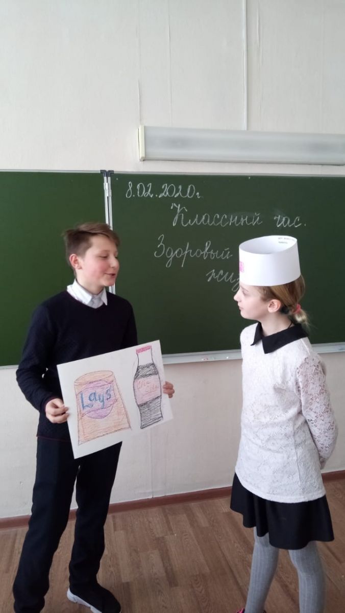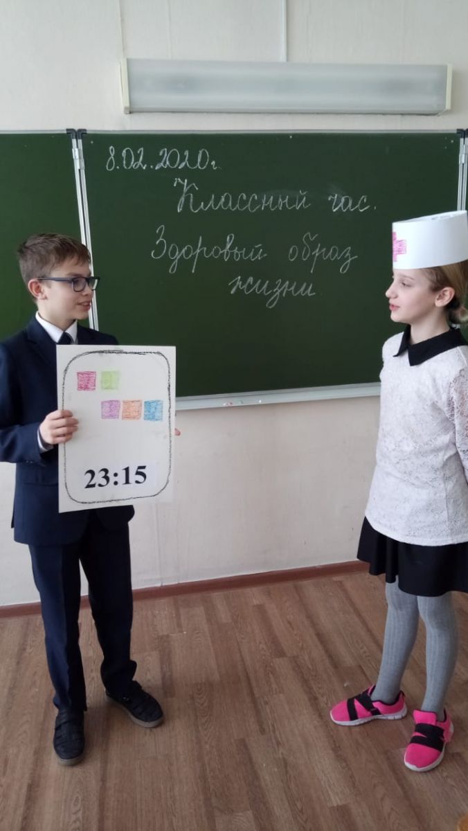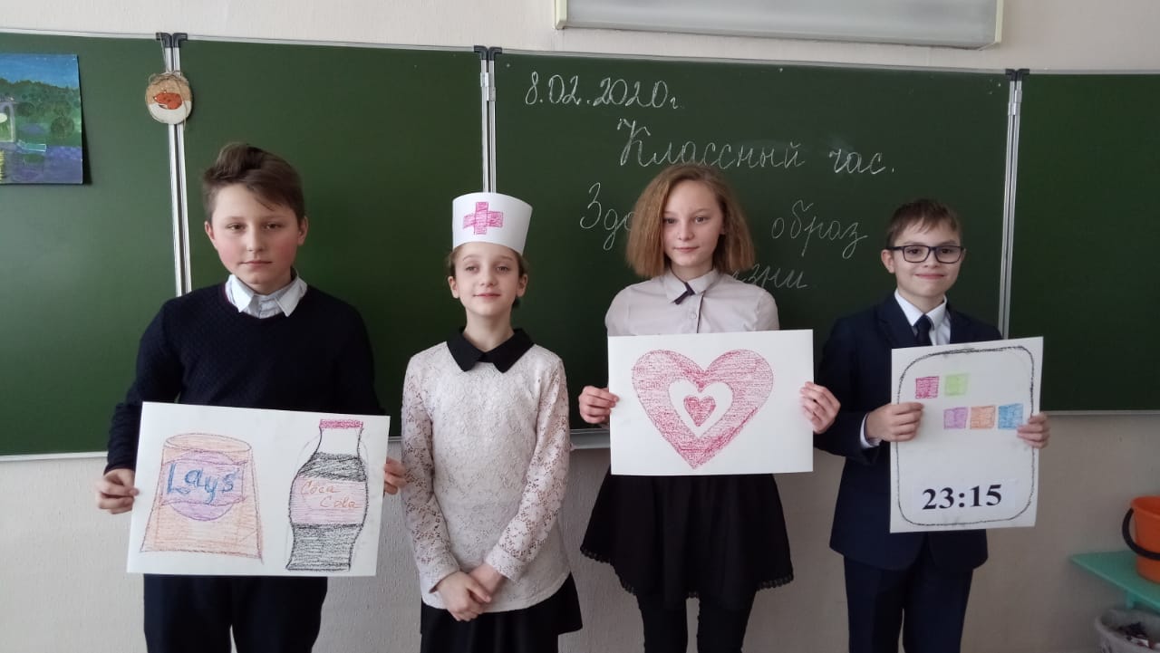 В пятом классе (классный руководитель Зарипова А.Г.) на классном часе о здоровье, учащиеся инсценировали сюжет "На приеме у врача". На приеме у врача пациенты жаловались на свои недуги, а доктор давал полезные советы о здоровом образе жизни.