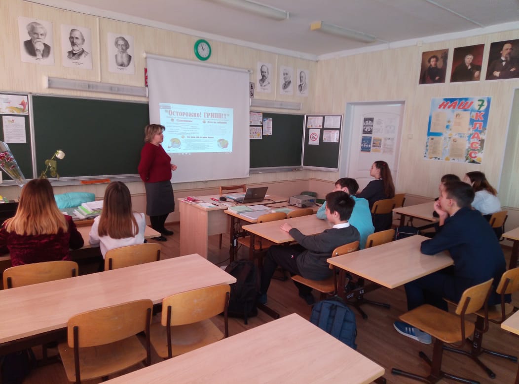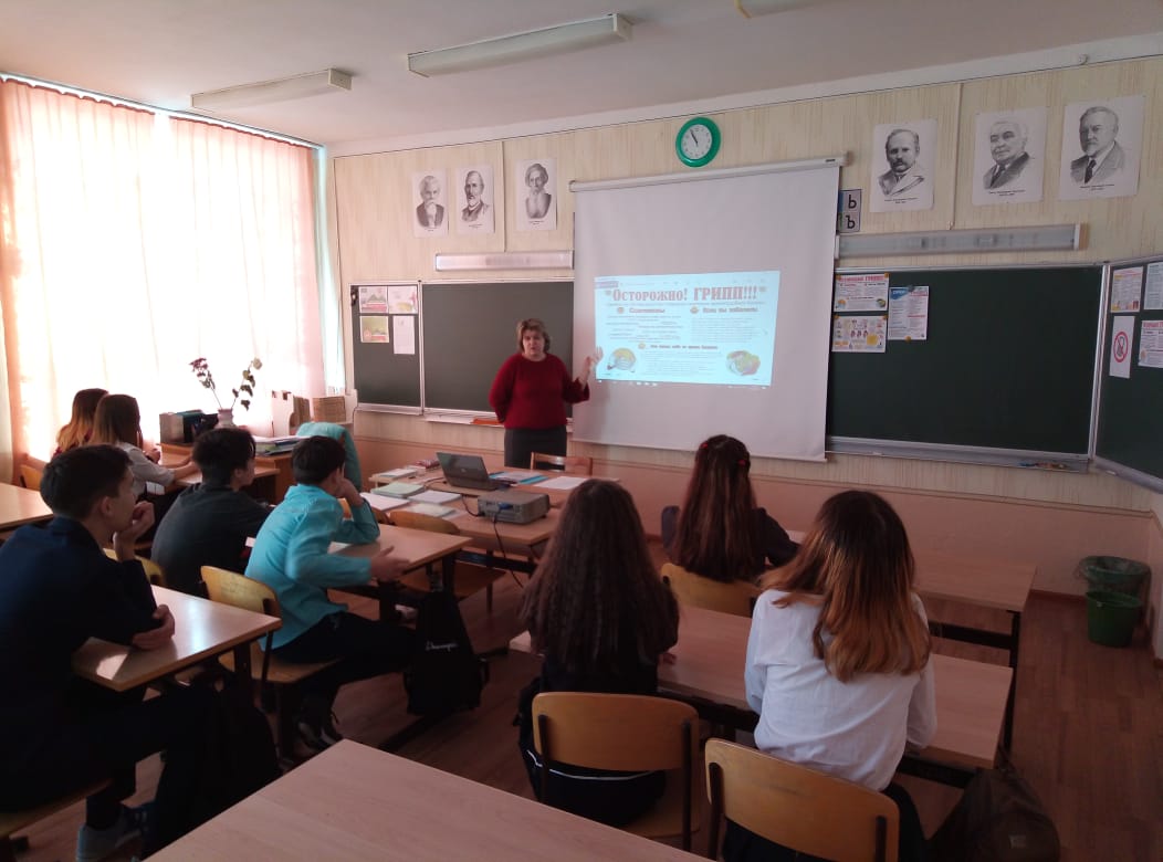 В ходе беседы учащиеся восьмого класса (классный руководитель Маслакова Г.Я.) обсудили меры по профилактике ОРВИ и гриппа в период повышения уровня заболеваемости среди населения. В первую очередь, это соблюдение личной гигиены, правильное сбалансированное питание, здоровый образ жизни. Особо было отмечено, что при первых признаках заболевания нужно обратиться к врачу, а не заниматься самолечением.