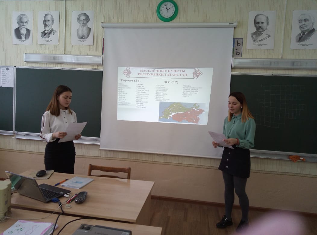 23 января в 8 классе прошел классный час на тему «История моей республики», приуроченный к 100-летию образования ТАССР. Учащиеся Раджапова А. и Лукьянова Н. рассказали своим одноклассникам об истории становления нашей республики, ее месте на географической карте России. В своем выступлении они выделили несколько основных этапов в развитии ТАССР:- 20-40 годы XX века;- военные годы 1941-1945 гг;- 50-80 годы XX века;- образование Республики Татарстан в 90-ые годы;- современный Татарстан.Девочки составили кроссворд на знание основных татарских праздников, национальных костюмов, блюд татарской кухни. -