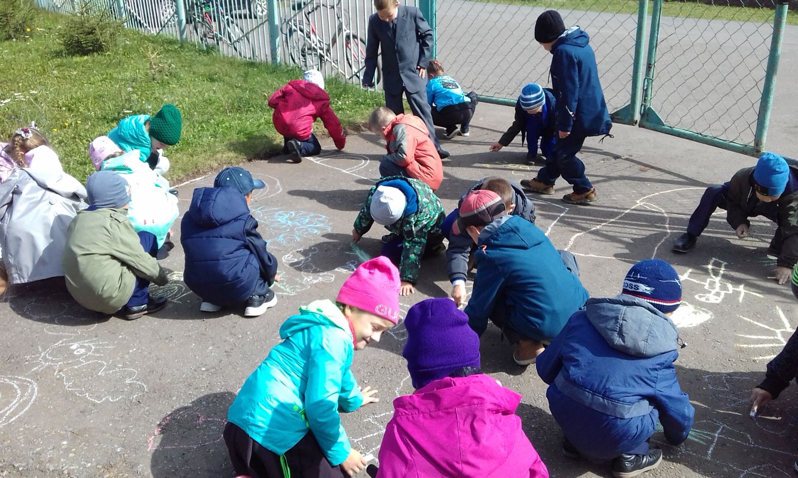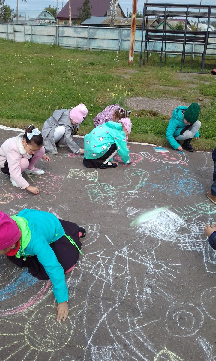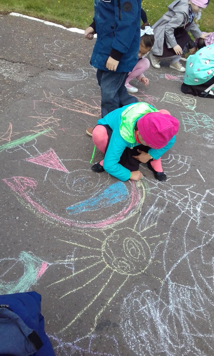 Мы рисуем на асфальтеМир, в котором мы живём.Разноцветными мелкамиСмело линии ведём!Нарисуем в небе солнце,Птиц парящих над землёй.На цветочной, на полянеМы построим большой дом.Нарисуем ребятишекИ девчонок, и мальчишек.Чебурашка забегал,Всем цветочки раздавал!День особенный сегодня,Терроризму скажем – НЕТ!Мы не зря сегодня сами,Рисовали ЖИЗНЬ БЕЗ БЕД!