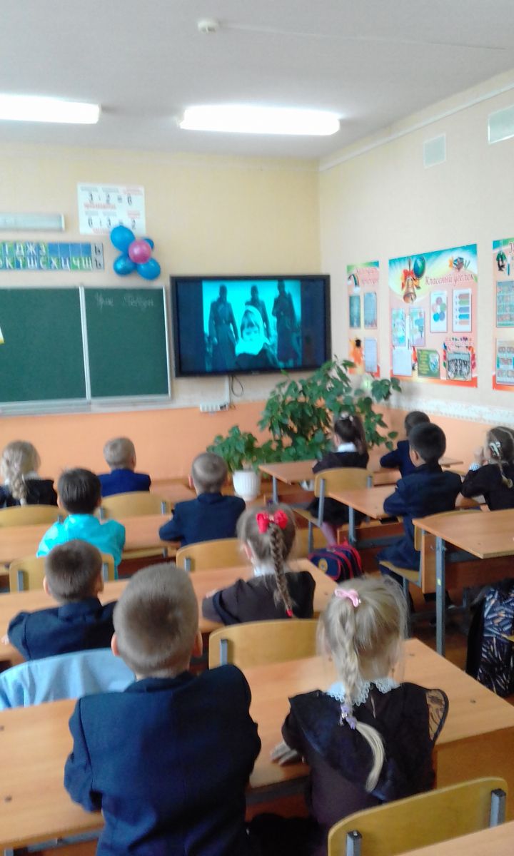 С целью формирования патриотизма, воспитания чувства гордости за свою Родину на примере героического прошлого дедов и прадедов учащихся, ветеранов и участников Великой Отечественной войны, воспитания чувства ответственности и долга перед Родиной, готовности к защите Отечества в 1 классе был проведен Урок Победы, посвященный Году Памяти и Славы - 75-летию Победы в Великой Отечественной войне 1941-1945 годов. Так же ребята просмотрели видеоролик «Дети войны».