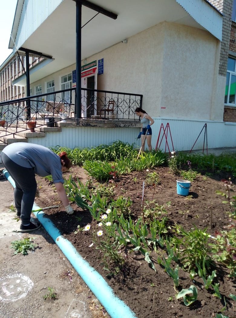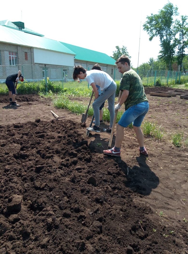 Продолжается работа пришкольного лагеря труда и отдыха. Ребята готовят грядки для посадочного материала, девочки облагораживают пришкольную территорию.