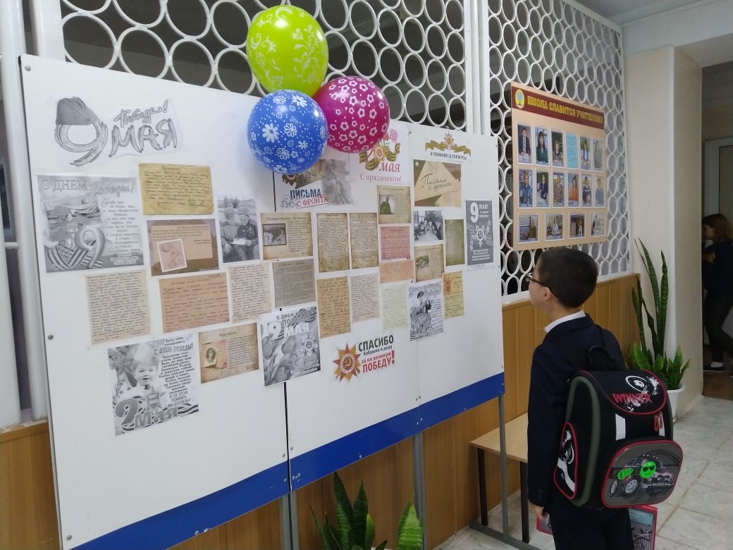 Наши деды и прадеды завоевали Великую Победу своей кровью. Они отдали свои жизни, чтобы мы жили в свободной стране.Помимо писем в школьной библиотеке была представлена выставка, посвящённая Великой Отечественной войне.Память о той дорогой цене, что заплатили наши прадеды, еще жива. И ее нужно поддерживать. все должны помнить о том, что мирное небо над их головами заработано множеством поколений защитников Отечества, их потом и кровью. Но эти неизвестные герои – такие же люди как мы. Об этом свидетельствуют реальные письма участников Великой Отечественной войны.Наши дети не проходили мимо. С гордостью подходили и читали письма представленные на доске памяти. Педагог - организатор и библиотекарь Андреева Л. М. -