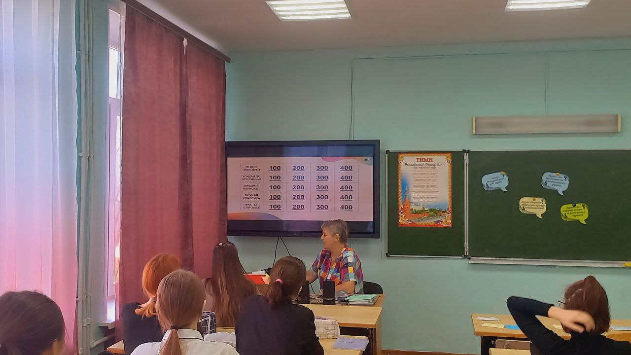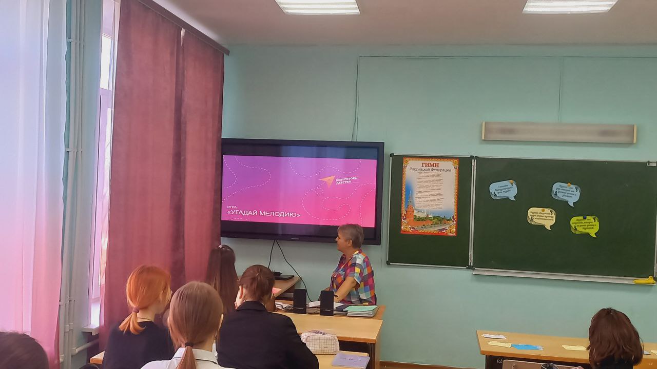 В преддверии международного дня музыки в нашей школе Журавлева М.П., советник по воспитанию, провела игру "Угадай мелодию" для учащихся 7 и 6 классов, целью которой являлось проверить возможности детей, их сообразительность и способность, открыть себя, укрепить интерес к познавательной деятельности, создать обстановку общей увлеченности и творчества.