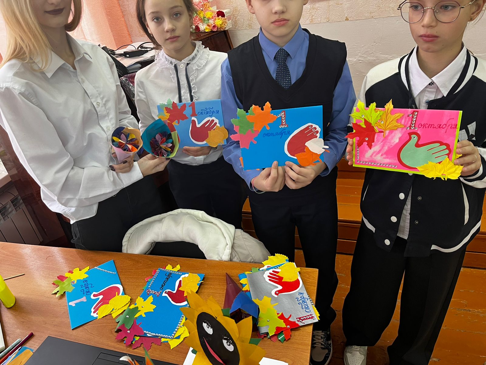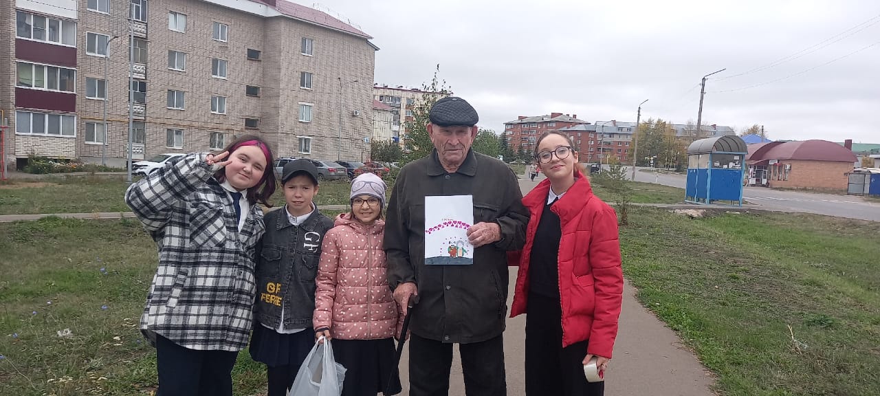 Ребята 5-9 классов расклеили по своему микрорайону поздравительные плакаты и открытки. Поздравляем людей, которые очень многое знают об этой жизни. Людей, которые могут многое рассказать и многому научить. Людей, чьи благородные седины означают не только возраст, но и безграничную мудрость, бесценный опыт и большие познания. Желаем вам бесконечно долгих и счастливых лет, наполненных здоровьем, покоем, счастьем и заботой. Желаем, чтобы, не смотря на возраст, ваша душа всегда оставалась молодой и энергичной. С праздником! -