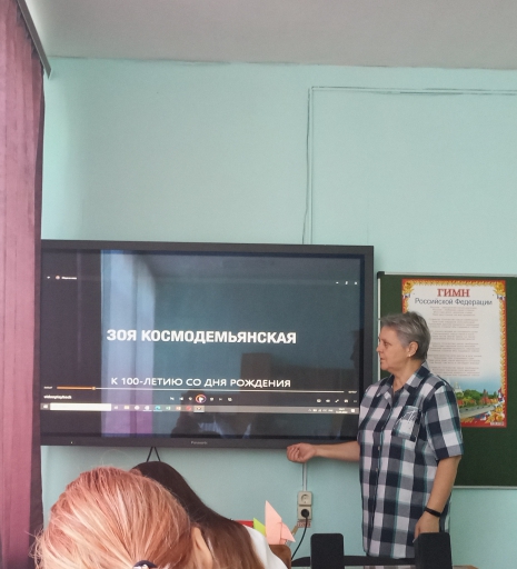 13 сентября 2023 года исполняется 100 лет со дня рождения Зои Космодемьянской. История первой женщины-героя Советского Союза в годы Великой Отечественной войны облетела весь мир. Сегодня, в год 100-летия со дня её рождения, важно вспомнить о человеке, ставшем символом антифашистской борьбы, несгибаемости советских людей, показавшем небывалую волю к победе, нежелание сдаваться и подчиняться врагу.Журавлева М.П., советник директора по воспитанию и по взаимодействию с детскими общественными объединениями, для учащихся 6-9 классов провела час мужества «Зоя: шаг в бессмертие». Ребята познакомились с историей жизни Зои, ее партизанской деятельностью против фашистов под Москвой в начале Великой Отечественной войны, с детскими и юношескими годами Зои, посмотрели документальный фильм о том, как молодая разведчица попала в плен к немцам, подверглась страшным пыткам и была повешена. Ребята с волнением слушали рассказ о её сильном характере, несгибаемой воле и вере в победу.В завершение мероприятия школьники пришли к выводу, что подвиг – это не только смелость и героизм, но и великий труд, железная дисциплина и огромная любовь к Родине. Память, живущая в наших сердцах – это наша вечная благодарность воинам, вставшим на пути захватчиков в годы Великой Отечественной войны. -