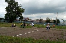 Летняя трудовая практика продолжается. Ребята из трудовой бригады занимаются очисткой спортивной площадки от травы.