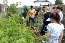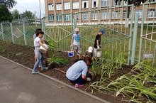 Со 2 июля ребята из трудовой бригады занимаются облагораживанием территории школы. Под руководством учителей школьники помогают пересаживать цветы, пропалывают грядки и клумбы.