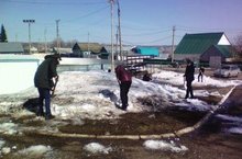 В рамках санитарно – экологического двухмесячника на территории школы проводится рыхление снега