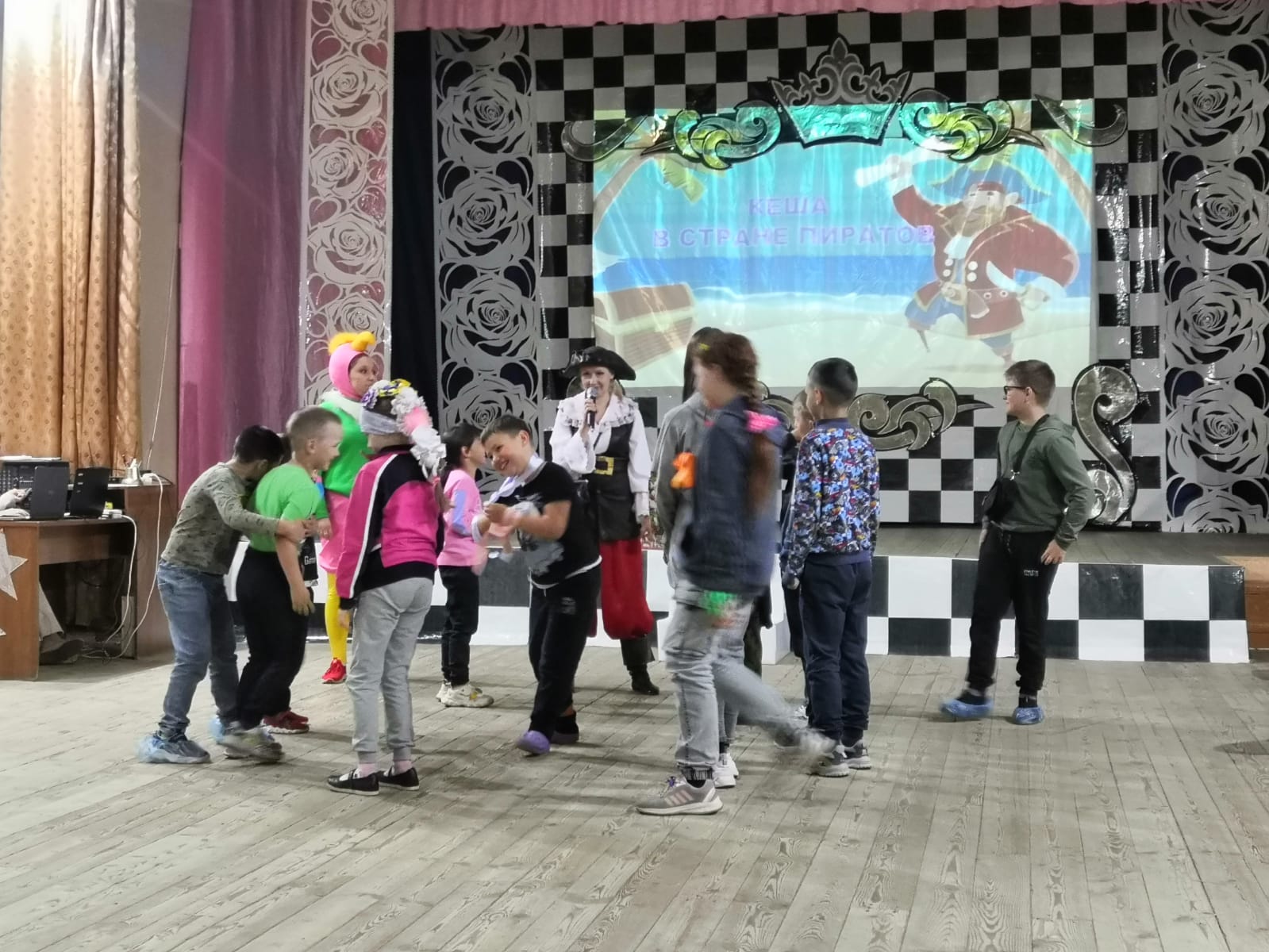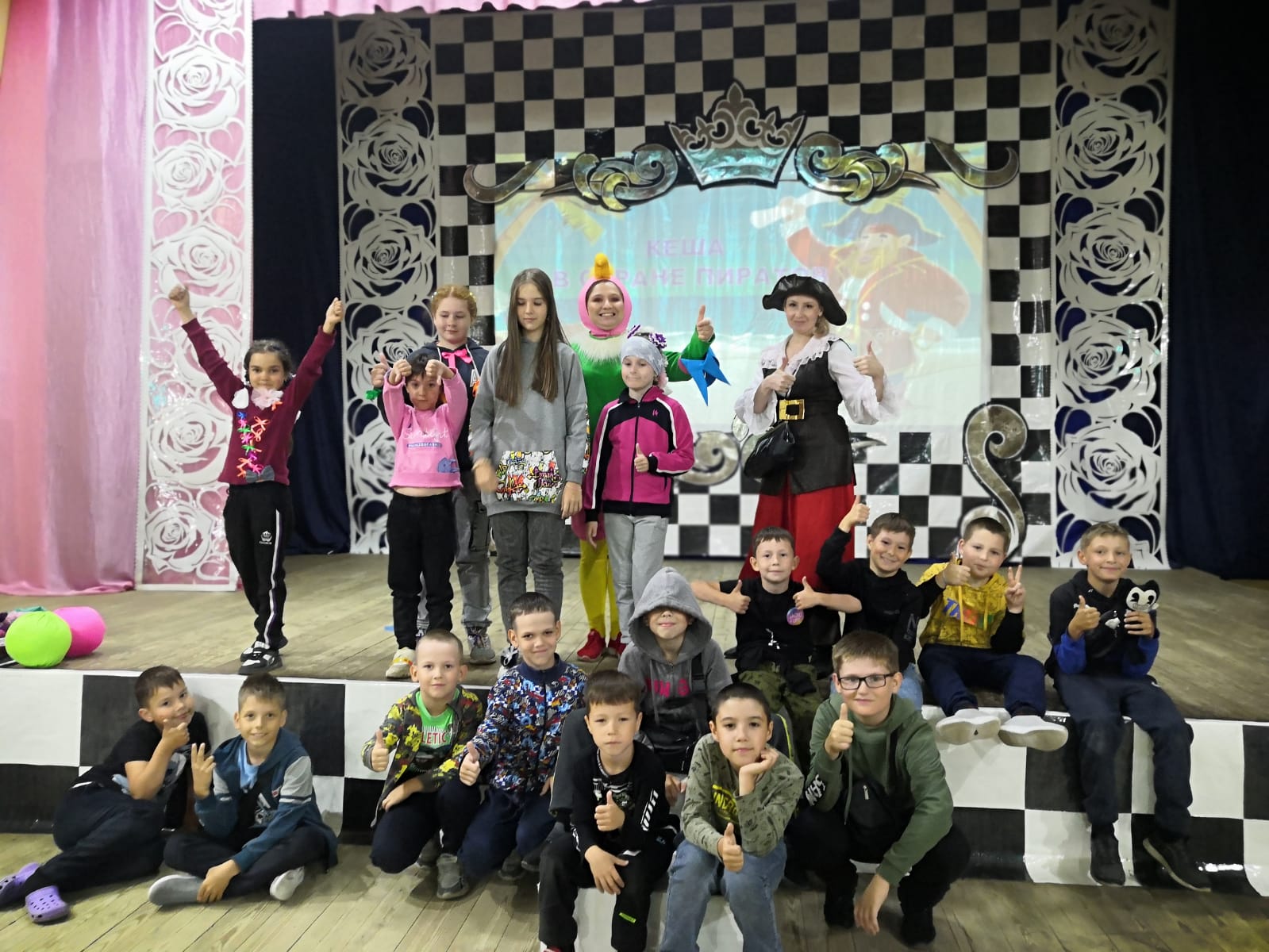 Доброе утро , лагерь.С утра все делаем быстро: быстро зарядку, быстро линейку, быстро позавтракали и быстро пошли в ДДТ на развлекательную программу «Кеша в стране пиратов». Начало было в 10.00, а идти далеко. Уф! Пришли! Немного устали. Но на представлении так было интересно, что все забыли про усталость. Играли, отгадывали загадки, пели песни, танцевали.На обед мы чуть опоздали, но Лилия Юрьевна накрыла порции прям перед нашим приходом. Так что все было горячее и вкусное. Многие просили добавки.После обеда –долгожданный конкурс бантиков и веснушек. Мы так долго его ждали! А многие с утра ходили в бантиках и с нарисованными веснушками. Только Маша Суслова может похвастать настоящими.Конкурсы были интересные и даже трудные некоторые. Ребята попробовали себя в роли стилистов: украшали платье для принцессы бантами. Поняли, почему учителя говорят иногда, что мы пишем , как курица лапой: держа фломастер пальцами ноги, попробовали написать слово «бантик». Нарисованным клоунам приклеивали веснушки. В перерывах между конкурсами танцевали своё любимое мини-диско.Самый главный конкурс, конечно, был на количество бантиков на одежде. Победила Муртазина А., призерами стали Тимирова Д., Хузиева А., Суслова М., Илюхин М. и Ялтанов В.Все довольные пошли домой, потому что главное не победа, а участие! -