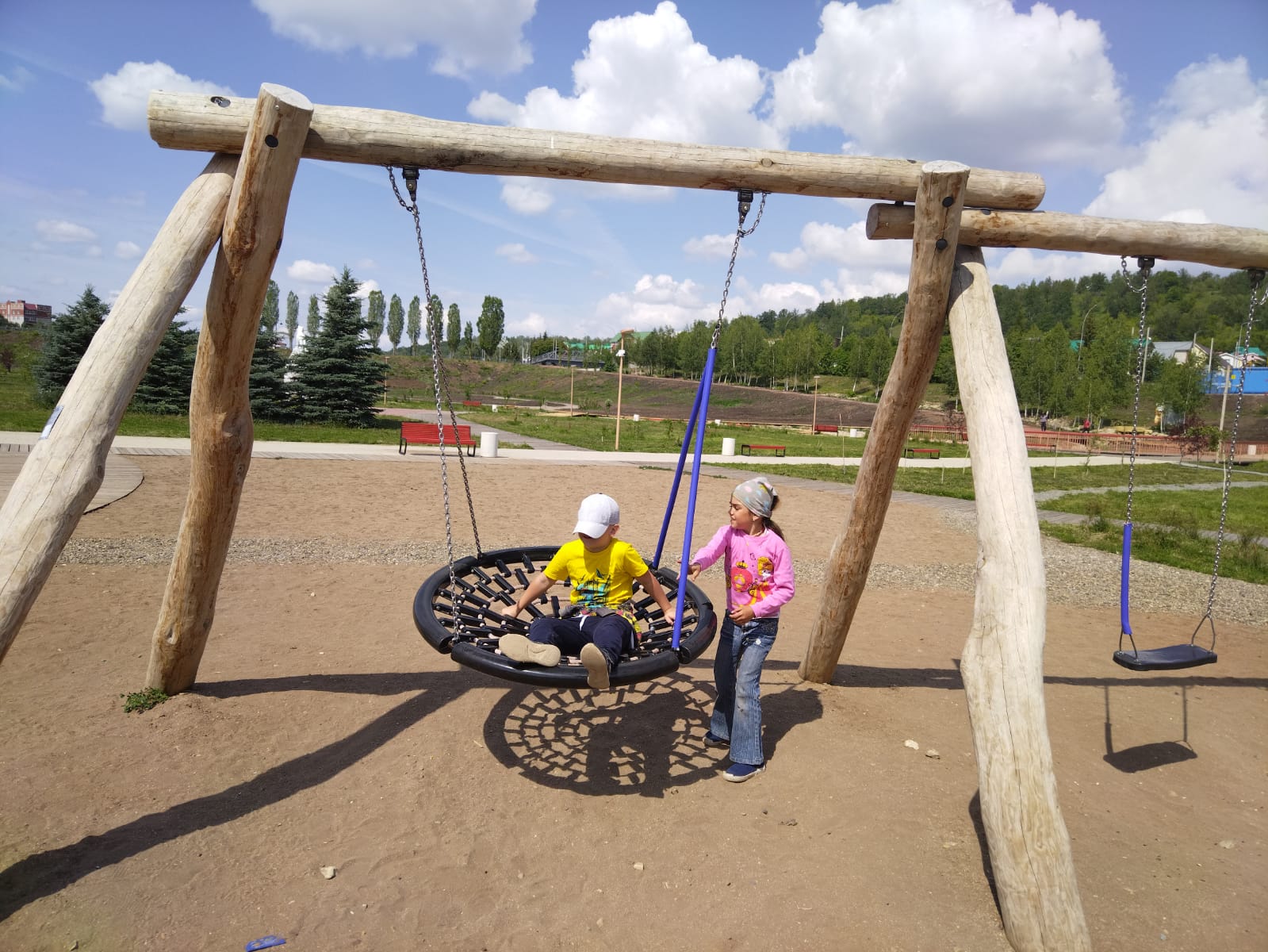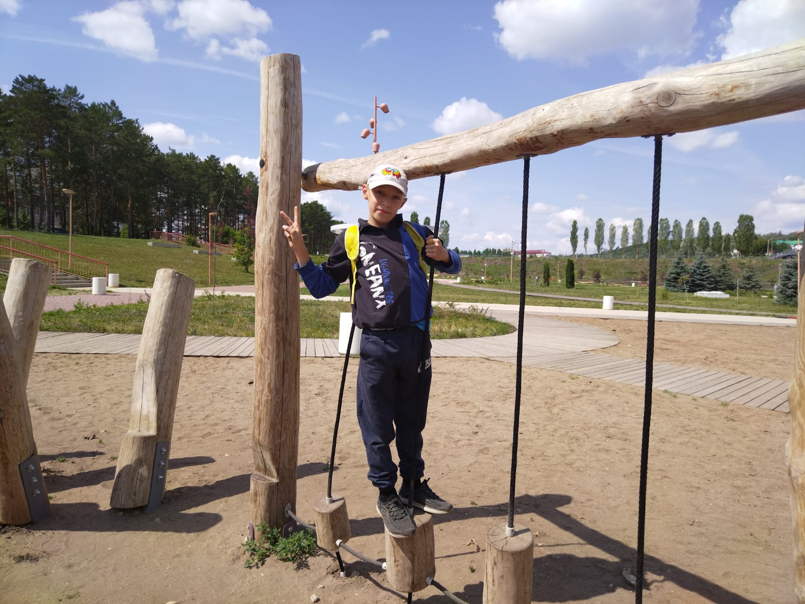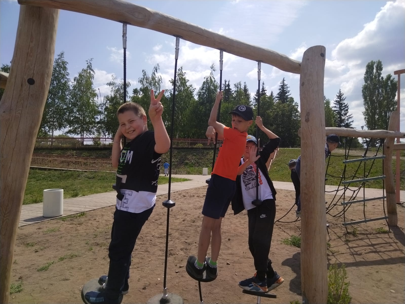 Ура! Погода с утра солнечная. Мы собрались сразу на спортивной площадке. После переклички сделали зарядку, провели линейку.После завтрака мы пошли всем лагерем в парк «Юбилейный». Но сначала воспитатели нам напомнили правила безопасного поведения во время проведения экскурсий и правила безопасного перехода через дорогу.В парке было очень весело, мы катались, бегали в догонялки, лазили на тренажорах, фотографировались. Потом отправились в парк военной техники. Мальчишки облазили все танки и самолеты.На обед прибежали чуть с опозданием, зато съели всё и попросили добавки.После обеда поиграли на спортивной площадке, а потом нас ждала Лилия Юрьевна, чтобы провести с нами игру «Шаро-Бомс». Ох, и насмеялись мы на конкурсах с шарами. И призы получили.Ну всё, теперь можно и по домам. До свидания, лагерь! До встречи, друзья! -