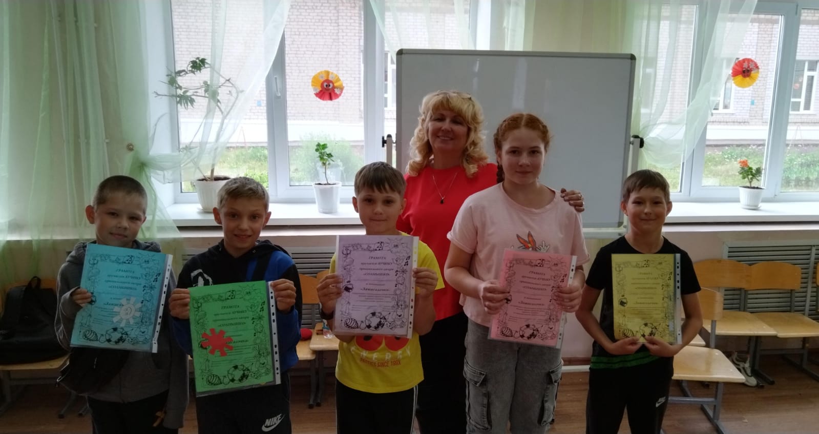 Вот и закончилась первая смена пришкольного лагеря 2023 года.Всем немного грустно расставаться с новыми друзьями, но зато большая часть лета еще впереди! Да и многие из нас идут отдыхать во второй смене лагеря.Сегодня погода менялась аж три раза! С утра было холодно, потом наступила жара, а к концу дня небо заволокло черными тучами, загремел гром, засверкали молнии, хлынул дождь. Но многие из нас были уже в машинах встречающих родителей, либо дома.И программа сегодня была насыщенная. После завтрака мы посмотрели интересный новый мультфильм «100%-ный волк».После обеда к нам из-за плохой погоды пришла библиотекарь филиала №2 Городской детской библиотеки Аделина Гамировна и провела игру «Береги себя для жизни».Перед уходом домой Лилия Юрьевна провела с нами инструктаж по технике безопасности на дороге, во дворе, при общении с незнакомыми людьми, при пожарной и электрической опасности, вблизи водоёмов и т.д.Самым приятным моментом была линейка с награждением ребят по разным номинациям. Какие только номинации не придумали для нас воспитатели: «Люблю поесть», «Самое доброе сердце», «Зажигалочка», «Мистер Икс», «Непризнанный гений», «Розовая Леди» и др. Каждый из нас получил файл с призами. Было очень приятно.Прощай, лагерь! До встречи в следующем году! -