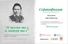 Учащиеся 7,8,11 классов нашей школы приняли участие во Всемирной контрольной по татарскому языку и литературе, посвященной 130-летию со дня рождения Г.Тукая. Все они успешно прошли тестирование и были награждены сертификатами.