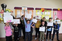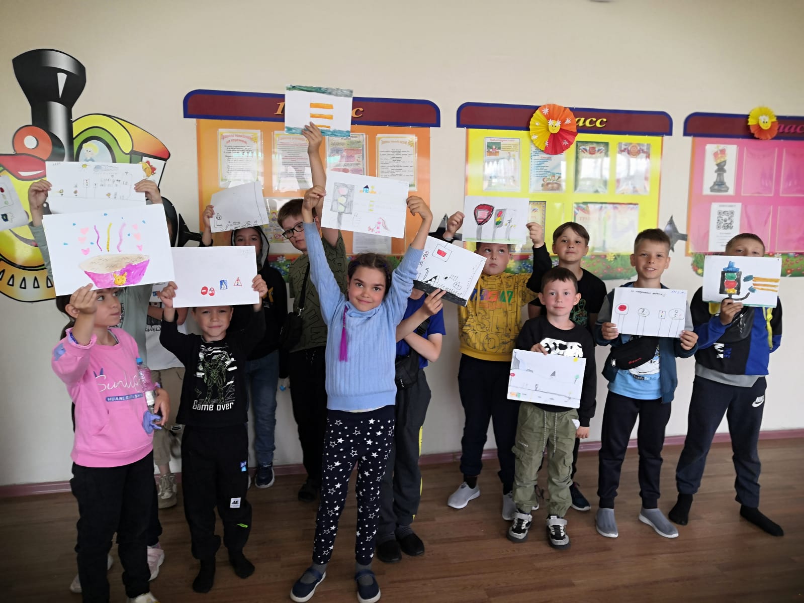 С утра градусник показывал 12 градусов. Холодно. Но мы все равно пришли в наш лагерь.Зарядку провели в спортзале, на линейке был проведен инструктаж по Правилам дорожного движения. Ведь мы сегодня идем в Центральную детскую библиотеку им. Ю.А.Гагарина.Но сначала мы немного поиграли на спортплощадке, погрелись, можно сказать. Затем мы собрались в игровой комнате , чтобы порисовать на тему «Безопасная дорога». Рисунки у всех разные. Лилия Юрьевна оформила выставку из них.После обеда мы оделись, построились и отправились в библиотеку. Нас ждала очень интересная познавательно-игровая программа «Правила дорожные детям знать положено».Обратно мы шли очень быстро: было холодно и хотелось домой!До свидания, лагерь! До встречи, ребята! -