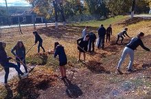В рамках Недели доброты учащиеся 9, 11 классов вышли на уборку пришкольной территории.