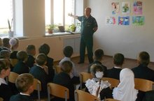 В рамках Месячника безопасности, для учащихся начальных классов была организована беседа о пожарной безопасности с приглашением капитана внутренней службы пожарной части ПЧ-66, начальника караула Никитина Владислава Васильевича. Он рассказал о важности соблюдения правил пожарной безопасности, недопустимости шалости с огнем.