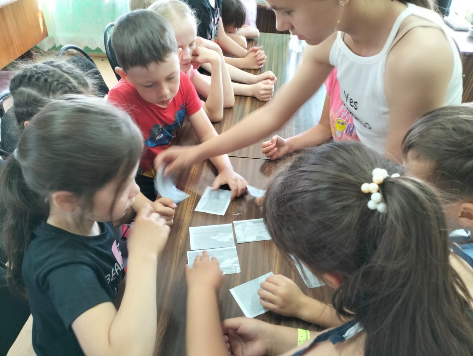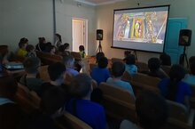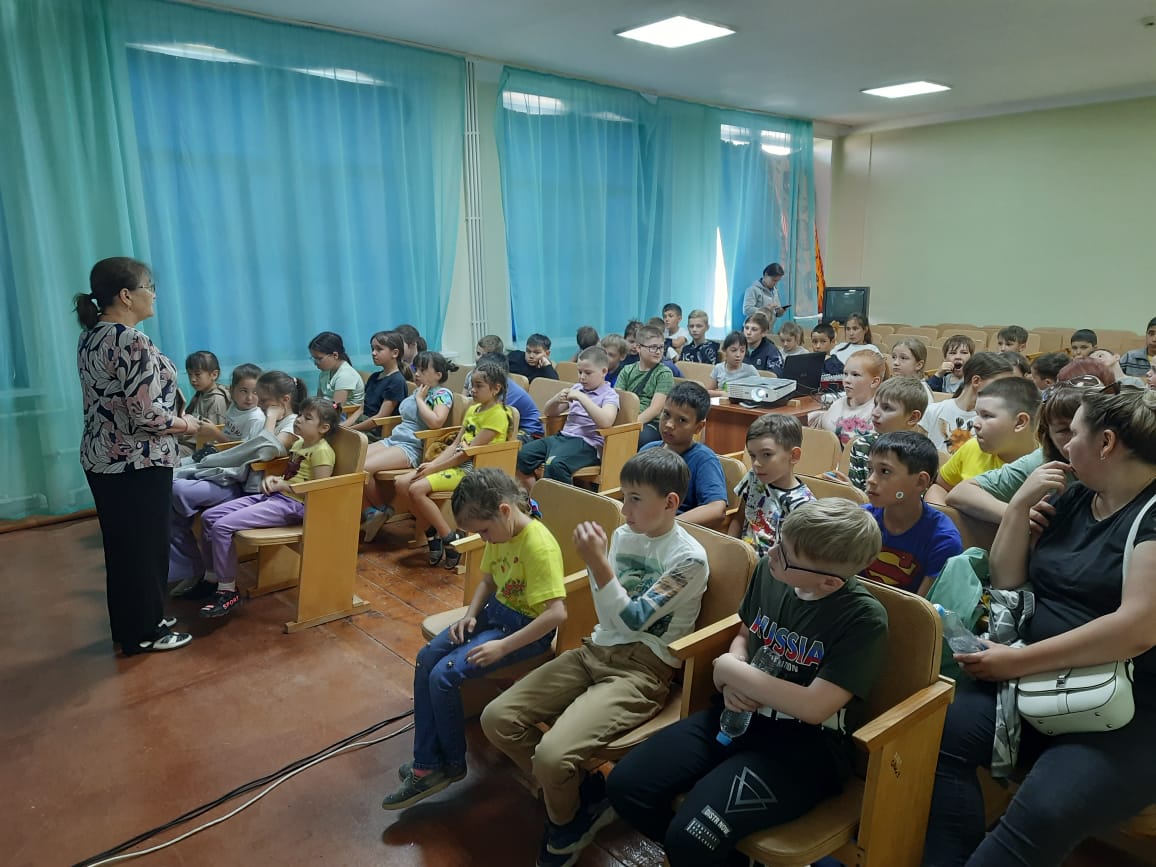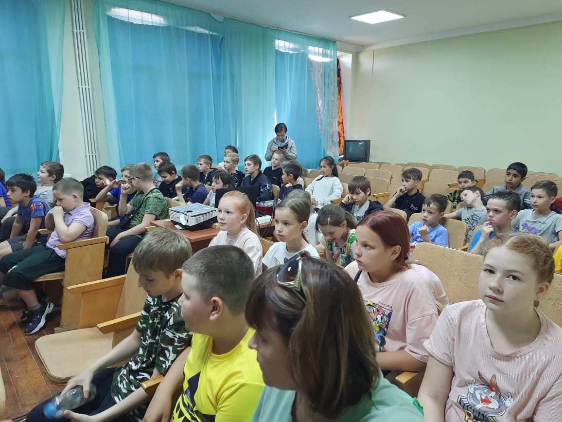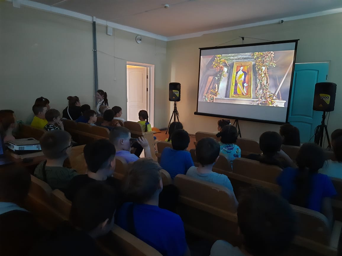 2 день. Лагерь продолжает свою работу.Самым замечательным событием этого дня был, конечно же, кинопоказ. Следует отметить, что в нашем лагере сегодня были гости. На желтом микроавтобусе к нам приехали ребята из Ивановской школы, а также пришли отдыхающие пришкольного лагеря школы из Совхоза. Так что наш актовый зал был полон! Работник Лениногорского кинозала Любовь Николаевна выступила перед ребятами сначала с небольшой беседой по профилактике летнего детского дорожно-транспортного травматизма и показала небольшой видеоролик на тему «Ловушка на многополосном переходе». После профилактической беседы был показан интересный мультфильм. А в следующий раз нам обещали показать киноновинку: фильм «Чебурашка»! -