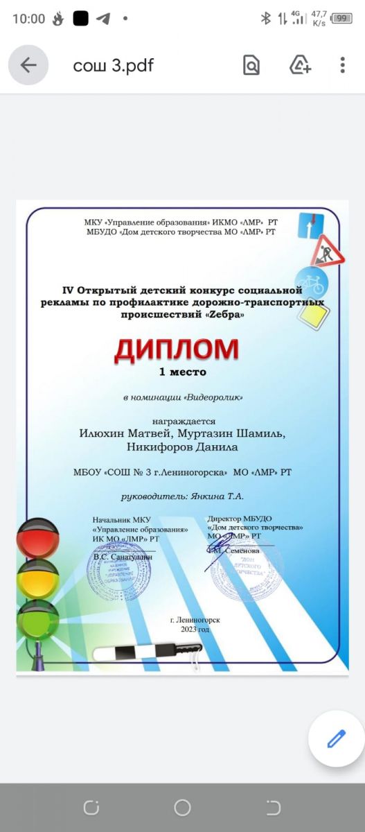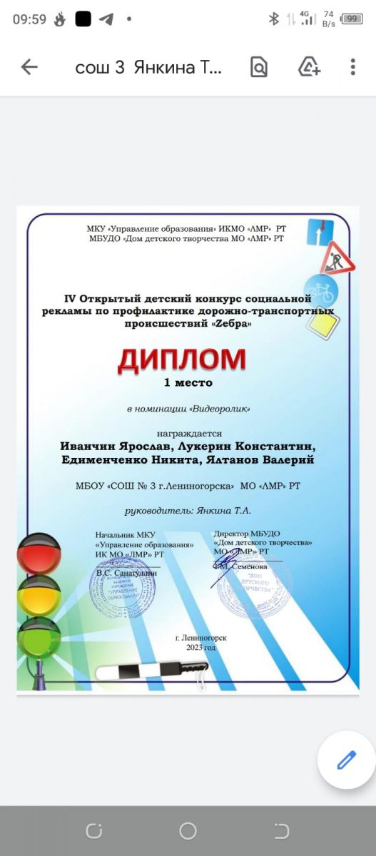 Наш отряд ЮИД «Светофорик» под руководством Т.А. Янкиной в IV Открытом детском конкурсе социальной рекламы по профилактике дорожно-транспортных происшествий «Zебра» одержал победу сразу в двух возрастных группах в номинации «Видеоролик». Особенно интересно сыграл роль нарушителя правил дорожного движения Вовки - Лукерин К. Поздравляем победителей! Ребята, вы большие молодцы!