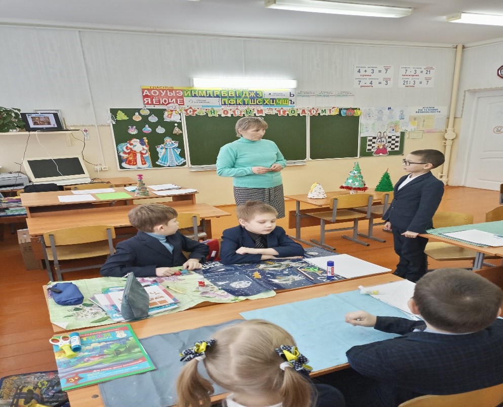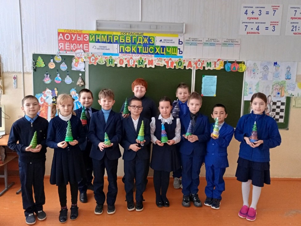 Приближается всеми любимый радостный и весёлый праздник – Новый год. С давних пор у людей существует традиция украшать дом и наряжать ёлку для встречи Нового года. Как приятно и радостно доставать из коробок любимые ёлочные игрушки: разноцветные сверкающие шары и прозрачные сосульки, весёлых зверюшек, звездочётов и клоунов, нежные снежинки, длинные гирлянды и блестящий «дождик»!Р.З. Камалова провела открытый урок по технологии во втором классе Мастерская Деда Мороза «Украсим ёлочку». Ребята с удовольствием работали на уроке, были активны и внимательны. Урок прошел успешно, интересно и плодотворно. -