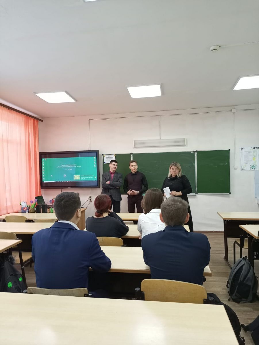 Всегда перед учащимися 9 классов стоит один жизненно важный вопрос: «Кем быть?» Так как жесткая конкуренция на рынке труда заставляет задуматься школьников и их родителей над этой потребностью. Самое главное - не растеряться, правильно сориентироваться, так как найти свое место в огромном мире профессий сложно, особенно молодому человеку, окончившему школу. Он должен сделать свой выбор в пользу профессии, добиться успеха для него, необходимого обществу, запросам и интересам рынка труда.Сегодня в гостях у ребят 9 класса были представители Лениногорского нефтяного техникума с преподавателем Казанцевой А.А. В ходе этой встречи гости подробно рассказали ребятам о профессиях и их особенностях, предложениях и правилах поступления, организации теоретического и практического обучения и досуга студентов, о стипендиальной системе, трудоустройстве выпускников. Старшеклассники получили не только ответы на все свои вопросы, но и полезный раздаточный материал.В ходе беседы представители техникума отметили, что ЛНТ – это большая дружная семья, где студенты не только познают теоретические аспекты различных наук, но и приобретают практические навыки успешного участия в конкурсах и олимпиадах, взаимодействии с работодателями. Здесь всегда рады принять новых студентов и помочь им вырасти профессионалами.В рамках таких встреч у ребят есть возможность сконструировать свою образовательную деятельность при выборе будущей профессии.