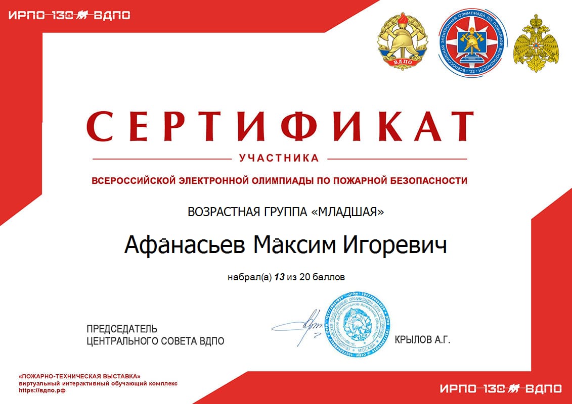 Всероссийская электронная олимпиада по пожарной безопасности 12.11.2022