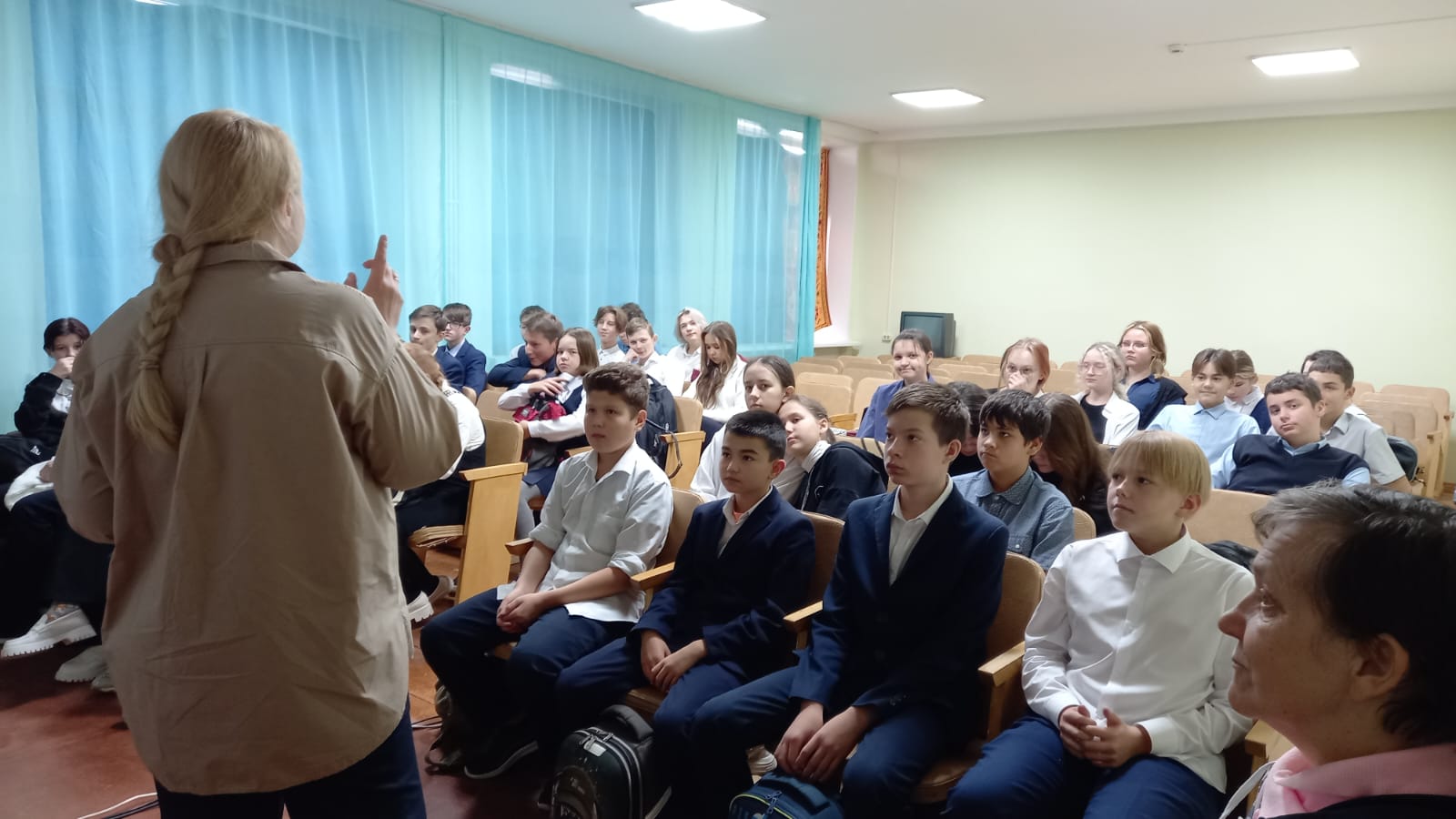 11 октября в школе № 3 прошел кинопоказ фильма «22минуты» в рамках антитеррористической программы «Террору-нет!». Администрацией школы и сотрудницей Лениногорского кинозала Любовью Николаевной была организована встреча с директором ФОРПОСТ –Дмитриевой И.В. Ирина Владимировна рассказала ребятам о способах и методике вовлечения подростков в разные деструктивные сообщества в интернете. Также ребята узнали, к чему это может привести и как этого избежать. Об этом ребята посмотрели короткометражный ролик «Шаг из тьмы».Затем перед ребятами выступила сотрудник Лениногорского Кинозала Любовь Николаевна, которая рассказала о сложной международной обстановке в стране и мире, о необходимости бороться со всеми проявления экстремизма и терроризма. Она провела небольшую политинформацию о положении на Донбассе и в Луганске. В итоге ребята посмотрели замечательный российский боевик 2019 года «22 минуты». Ребятам так понравился фильм, что счастливый конец картины они встретили бурными аплодисментами.