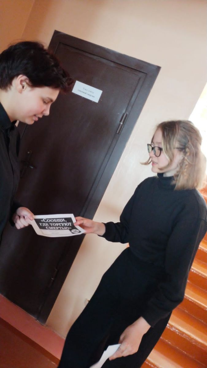 25 марта, в рамках проведения мероприятий по профилактике экстремистских и террористических проявлений, учащиеся 6 класса из отряда «СМС-дети» приняли участие в акции «Сообщи, где торгуют смертью», они распространяли листовки среди учащихся и учителей нашей школы. -