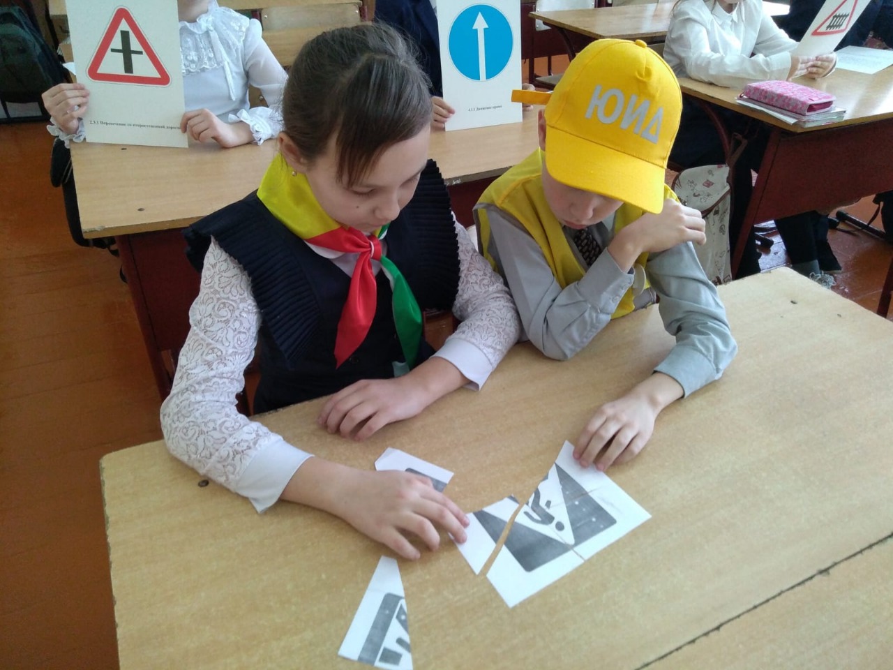 Состоялось посвящение учащихся 4 класса в отряд ЮИД, а также проведен конкурс эрудитов «Законы улиц и дорог».