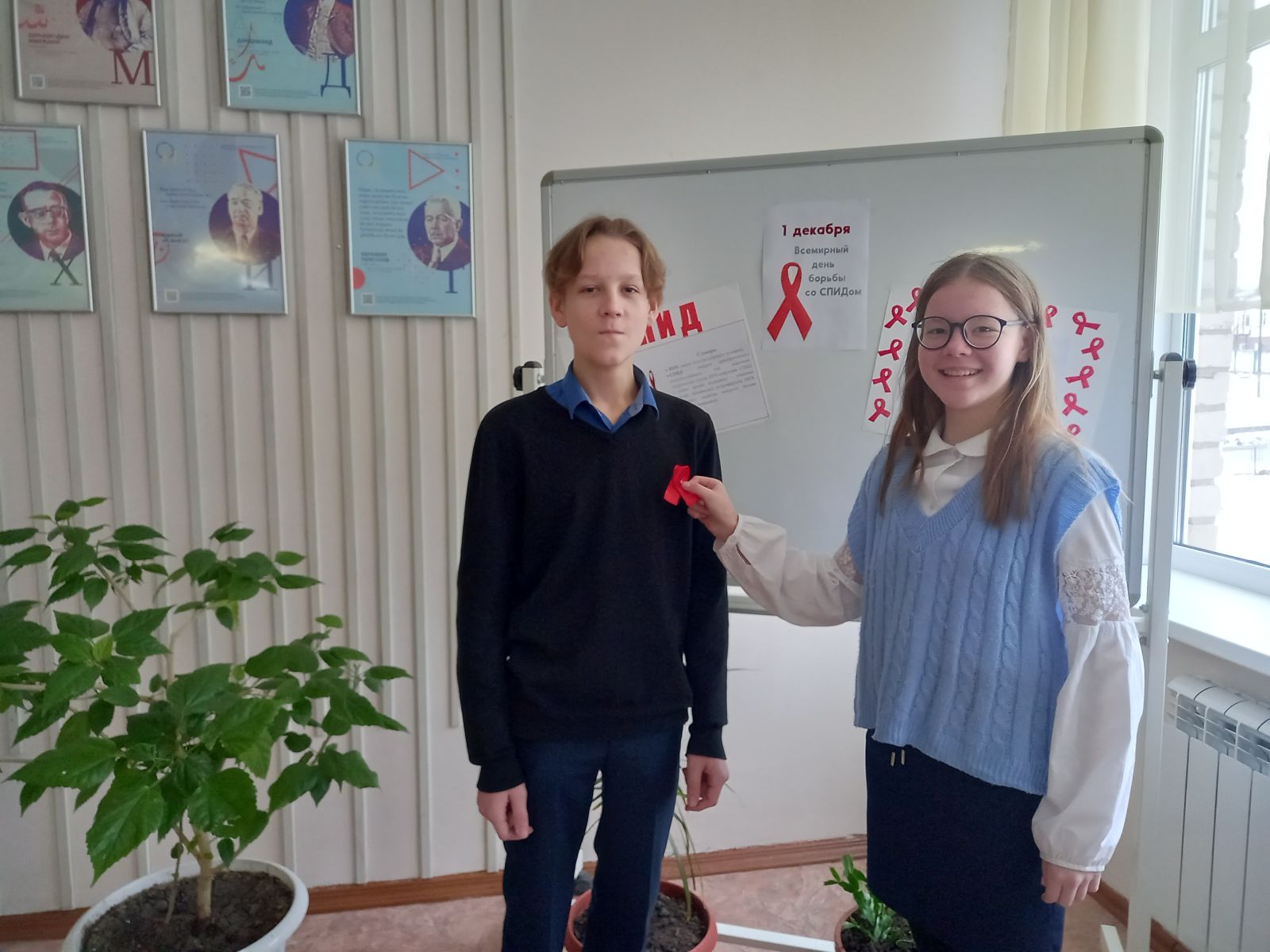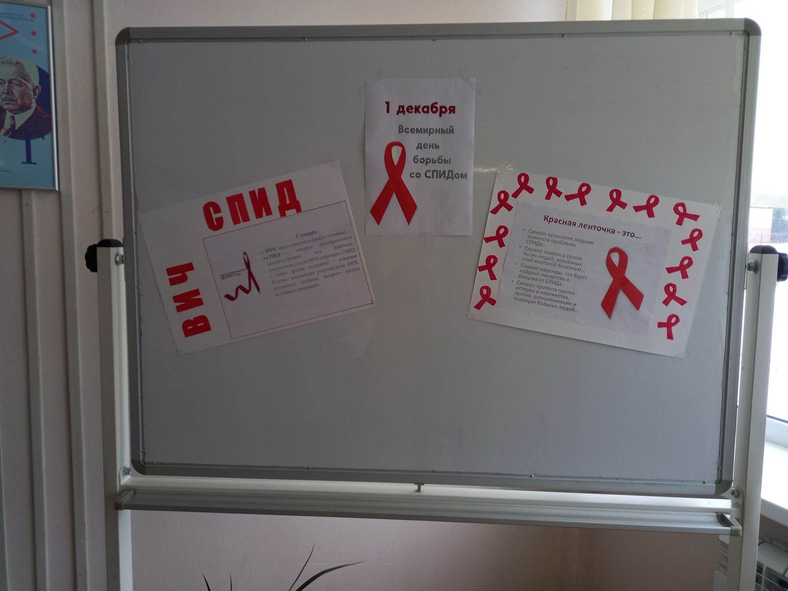 Ежегодно, в соответствии с решением Всемирной организации здравоохранения (ВОЗ) и Генеральной Ассамблеи Организации Объединенных Наций (ООН), принятым в декабре 1988 года – 1 декабря отмечается Всемирный день борьбы со СПИДом.В нашей школе стало традицией проводить мероприятия, посвященные этому дню. Цель проведения мероприятий: выработка активной жизненной позиции по предотвращению поведенческих рисков, связанных с возможностью заражения ВИЧ; формирования убеждения в необходимости соблюдения здорового образа жизни с целью профилактики ВИЧ-инфекции; формирование представления о реальных масштабах распространения ВИЧ.Учащиеся 6 класса в этот день вручали красные ленточки учащимся и учителям школы, как символ памяти о сотнях тысяч людей, унесенных этой жестокой болезнью, символ надежды, что будет найдено лекарство и вакцина от СПИДа…