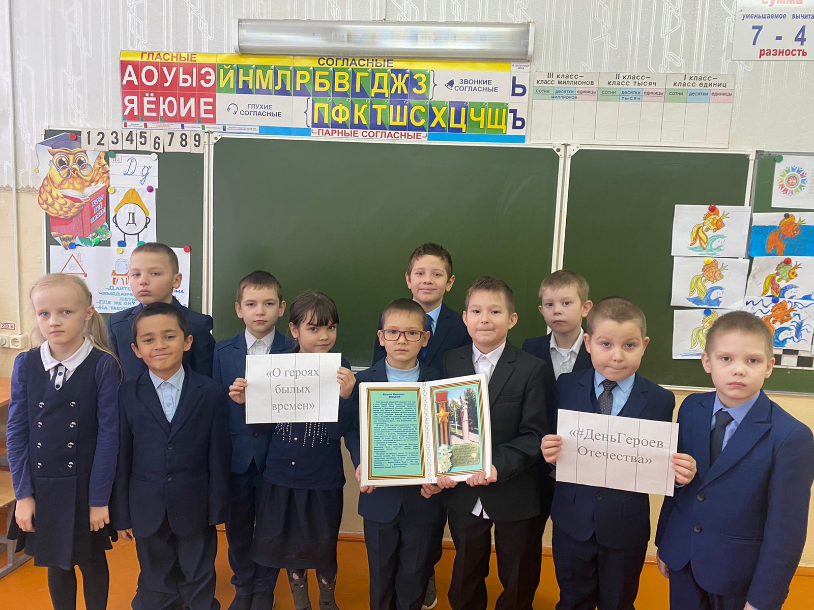 8 декабря библиотекарь Э.В. Хайруллина провела беседу в 1 классе "Час памяти о героях былых времён". Ребята приняли активное участие в акции # День Героев Отечества. -