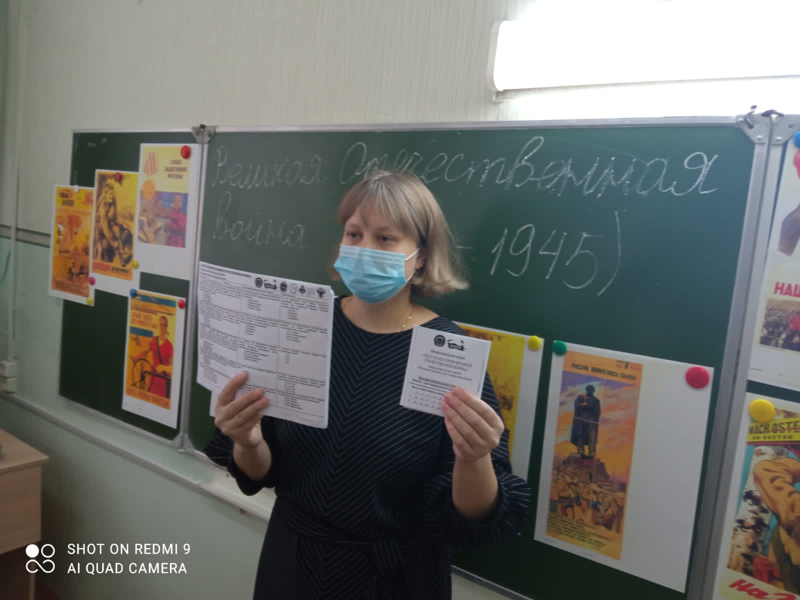3 декабря – это День Неизвестного солдата в России. В этот день в нашей школе была организована работа площадки Международной акции «Тест по истории Великой Отечественной войны».Организаторами Теста выступают Общественная молодёжная палата (молодёжный парламент) при Государственной Думе Федерального Собрания Российской Федерации при содействии Государственной Думы Федерального Собрания Российской Федерации и молодёжные парламентские структуры, созданные при законодательных (правительственных) органах государственной власти субъектов Российской Федерации.Принять участие в акции может любой желающий.Задачами акции являются:-получение объективной информации об уровне исторической грамотности населения России, соотечественников, проживающих за рубежом, иностранных граждан о Великой Отечественной войне с учётом возрастной структуры;-популяризация военного и гражданского подвига, ведущей роли советского народа в победе во Второй Мировой войне;-мотивация граждан Российской Федерации, соотечественников, проживающих за рубежом, иностранных граждан к изучению истории Великой Отечественной войны;-представление возможности участникам Теста получить объективную оценку своих знаний в области истории Великой Отечественной войны.Принять участие в акции можно было в режиме онлайн и офлайн.В акции приняли участие: - ученики 6 – 9 классов, сотрудники, дети сотрудников.Всего на базе нашей площади в Акции приняло участие:-в онлайн режиме – 18 человек;-в офлайн режиме – 47 человек.Максимальное количество баллов, которое можно было получить, по результатам тестирования: – 30 баллов.Лучшие результаты показали следующие участники:-Гирева В. – 30 баллов;-Кузнецова Н. Г. – 30 баллов;-Палкина А. – 30 баллов;-Мельникова В. – 29 баллов;-Вагапов Р. – 28 баллов;-Нурмухаметова Р. – 28 баллов;-Хайрутдинов А. – 28 баллов;-Щербаков А. – 28 баллов;-Ризатдинова Л. – 27 баллов-Есипов К. – 26 баллов;-Куринова А. – 25 баллов.Всем спасибо за участие! -