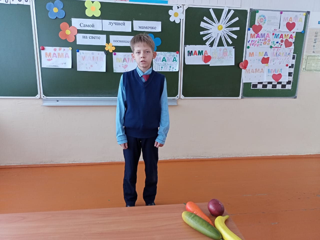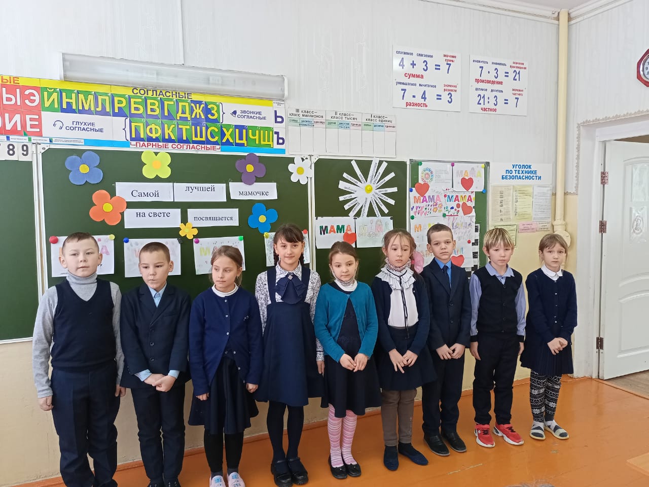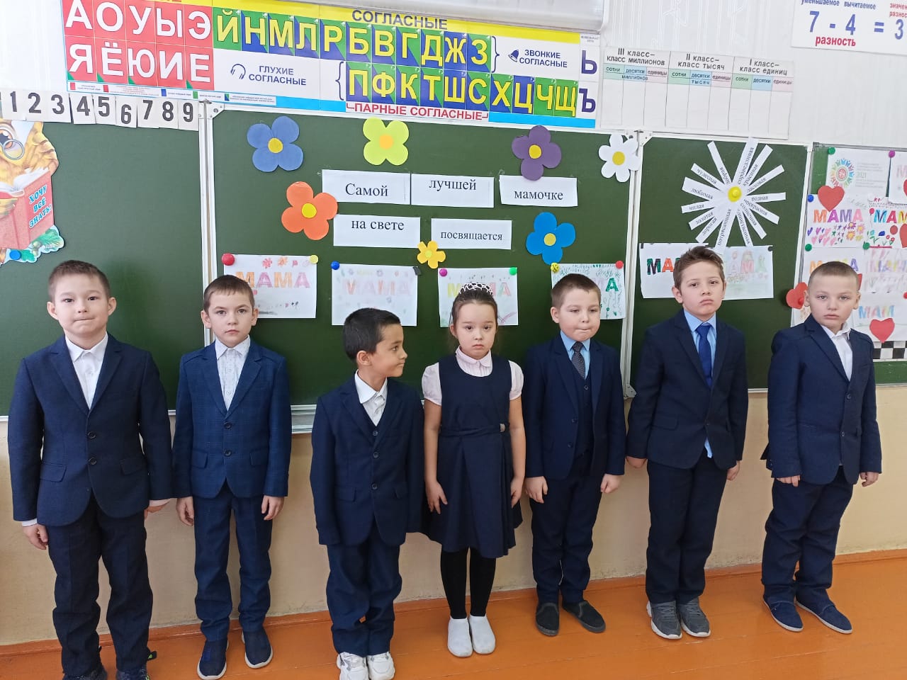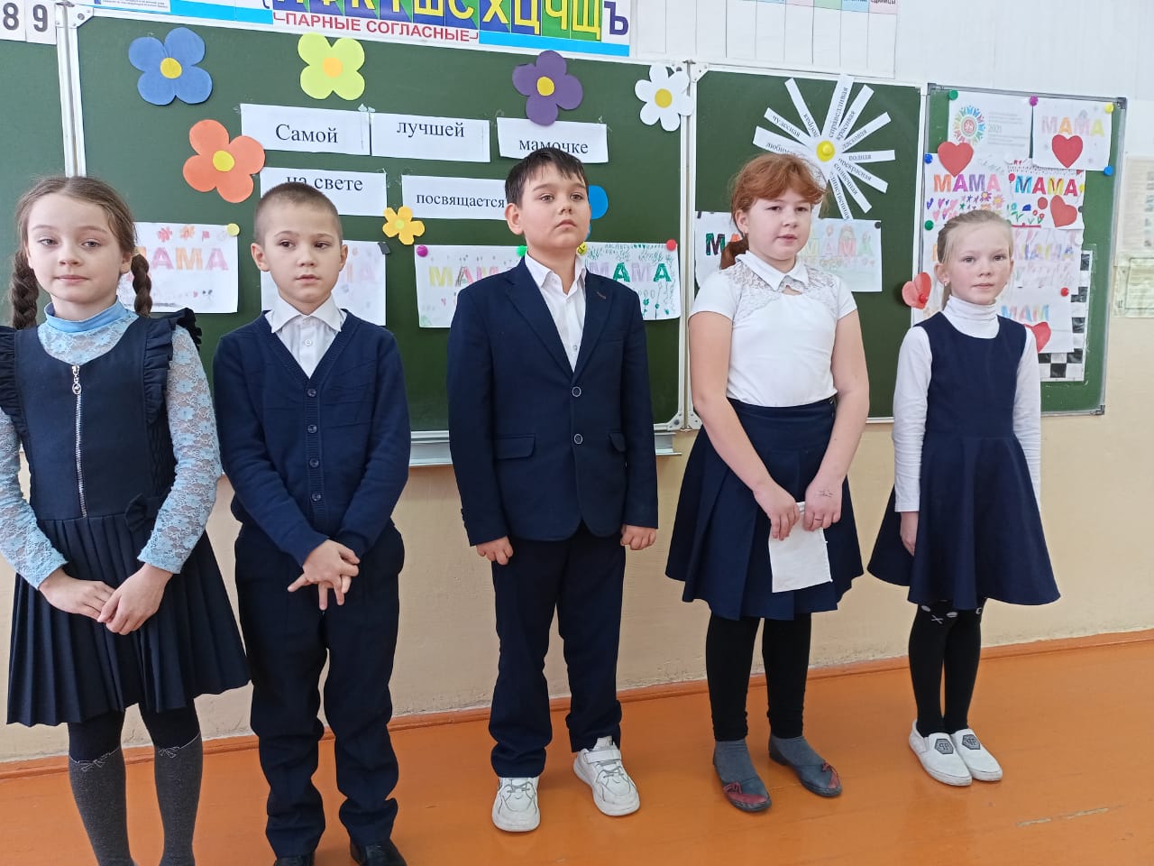 25 ноября. В этот день был конкурс стихотворений «Самой лучшей мамочке на свете посвящается…» Ребята подготовили нежные стихи о самом родном для них человеке.1 класс1 место - Алиев Т.2 место - Есипенко Т.3 место - Батрашкин Е.2 класс1 место - Рашитова Р.2 место - Азязова Л.3 место - Таушева К.3 класс1 место - Хайруллина М.2 место - Суслова М.3 место - Бадртдинова С.4 класс2 место - Косых М. -