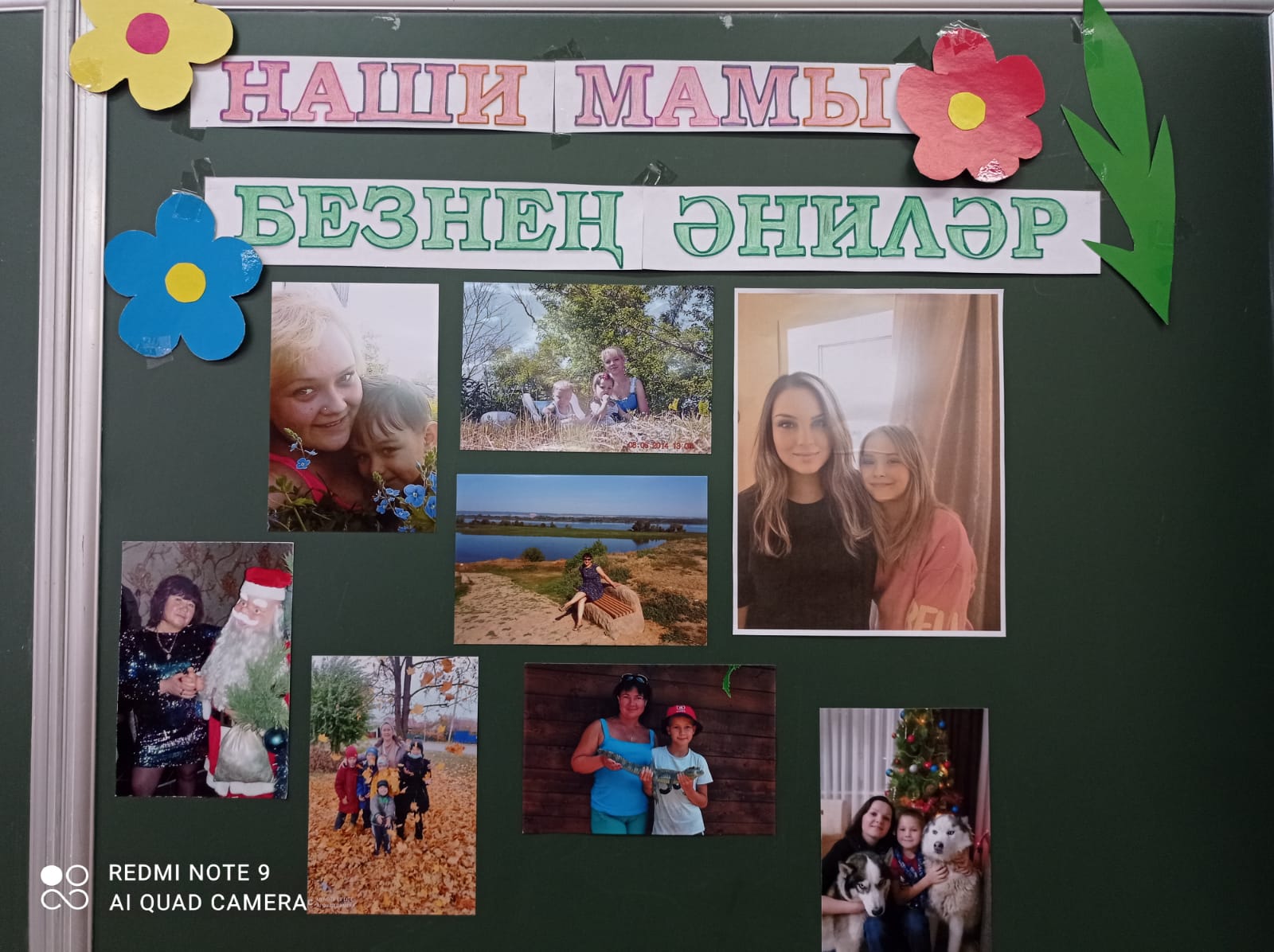 29ынчы ноябрь көнне татар теле һәм әдәбияты укытучысы Мөхетдинова Р.Ф. 3 енче сыйныф укучылары өчен «Әниләр сүзе» дип исемләнгән кичә уздырды. Кичәдә укучылар үзләренең әниләре турында сөйләделәр, җырлар башкардылар. Лепешкин Д., Бадртдинова С., Гилязова З., Хайруллина М. сыйныфташларына әниләр турында матур шигырьләр сөйләделәр.29 ноября учитель татарского языка и литературы Мухутдинова Р. Ф. провела для учащихся 3-х классов мероприятие «Слово матери». На празднике учащиеся рассказали о своих мамах, исполнили песни. Лепешкин Д., Бадртдинова С., Гилязова З., Хайруллина М. рассказали одноклассникам красивые стихи о маме. -