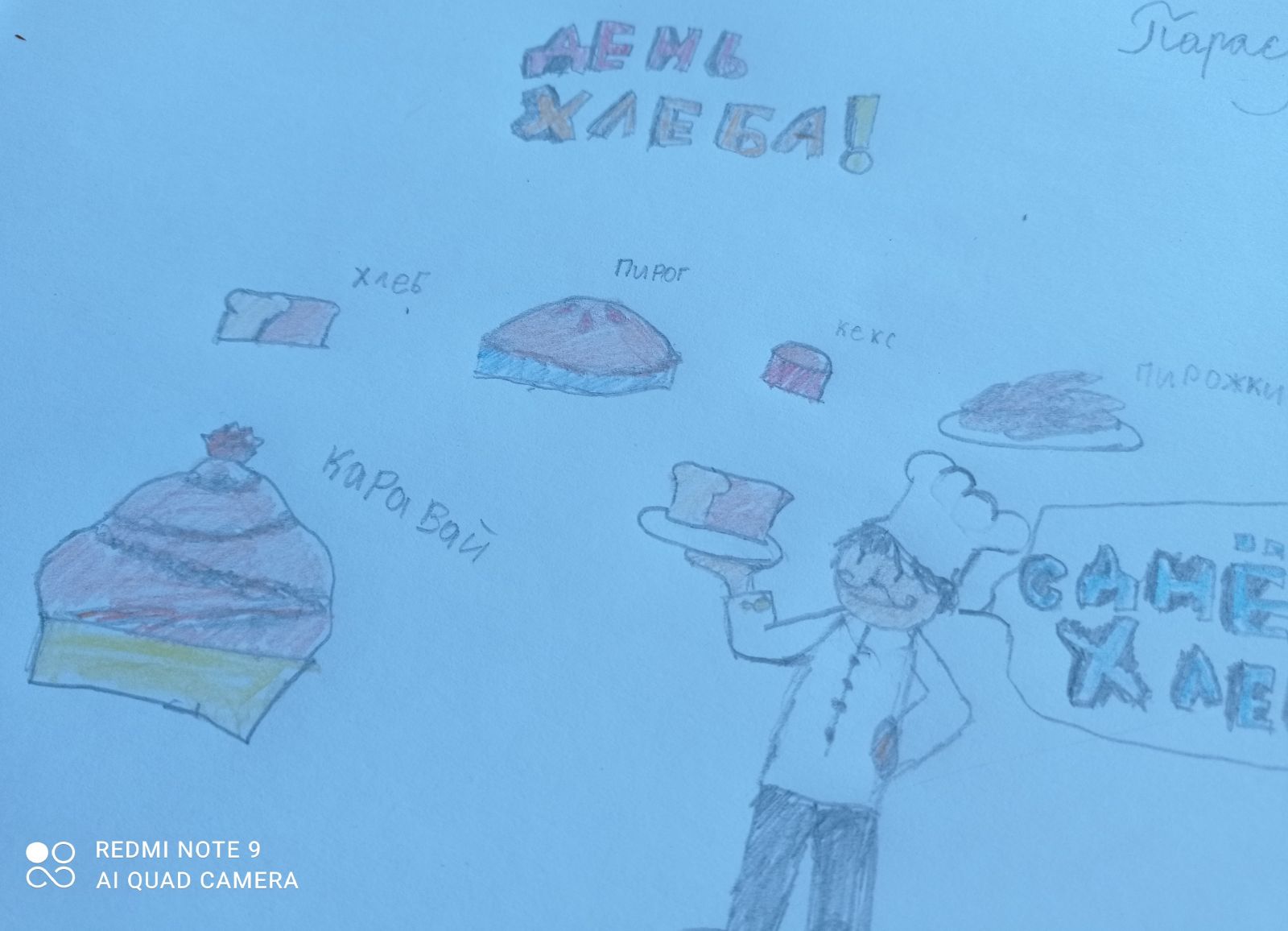 В честь празднования всемирного дня хлеба, в 3 классе прошел тематический день «Хлеб – всему голова».Цель: создать условия для формирования у воспитанников бережного отношения к главному достоянию человечества – хлебу.Задачи:• Обобщить знания детей о том, что хлеб – ценный пищевой продукт, получение которого требует большого труда.• Расширить знания детей о хлебе. Привить уважение к хлебу и людям, вырастившим его.• Воспитывать чувство уважения к труду хлеборобов, пекарей, бережное отношение к хлебу.Дети вспомнили правила пользования хлебом: «Бери хлеба столько съешь»; «Не оставляй недоеденных кусков»; «Никогда ни бросай хлеб»; «Подними брошенный кусок, отдай птицам, но не оставляй на полу, на земле, чтобы не затоптали в грязь человеческий труд». Чтение загадок, пословиц и скороговорок о хлебе помогли ученикам понять, что хлеб — это один из самых главных продуктов питания в России.А затем дети посмотрели сказку «О длинной дороге, от зёрнышка до каравая», из которой ребята узнали, сколько работы нужно проделать, чтобы получить маленькую булочку хлеба, которая приходит к нам на стол душистой с ароматной корочкой. -